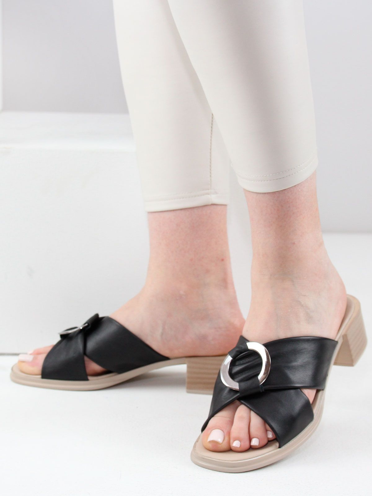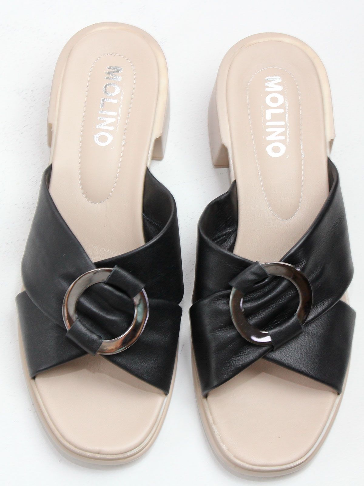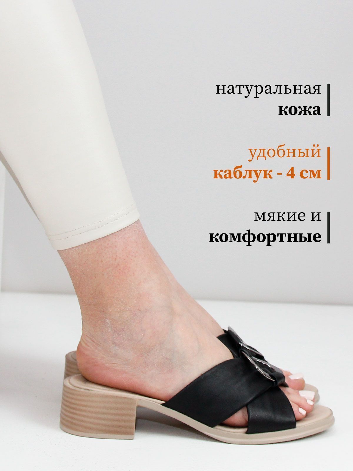 Элегантные сабо из натуральной кожи — идеальный выбор для летнего стильного гардероба. Верх модели выполнен из натуральной кожи, подкладка — из натуральной кожи для максимального комфорта. Устойчивый каблук средней высоты придаёт образу женственность. Особый акцент — украшение в виде металлического кольца, добавляет обуви изысканность и утончённость. Эти сабо женские летние прекрасно дополнят как повседневные, так и вечерние наряды. Черный цвет универсален и легко сочетается с любым образом. Натуральные материалы дарят комфорт в течение всего дня. Модель доступна в размерах 42, 43 и 44 — отличное решение для тех, кто ищет качественную и стильную женскую обувь больших размеров. Сабо женские Molino из натуральных материалов – это практичность, комфорт и эффектный внешний вид.