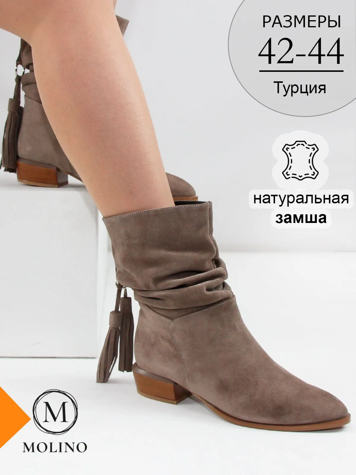 Модель Molino выполнена из натуральной замши— мягкой и приятной на ощупь.