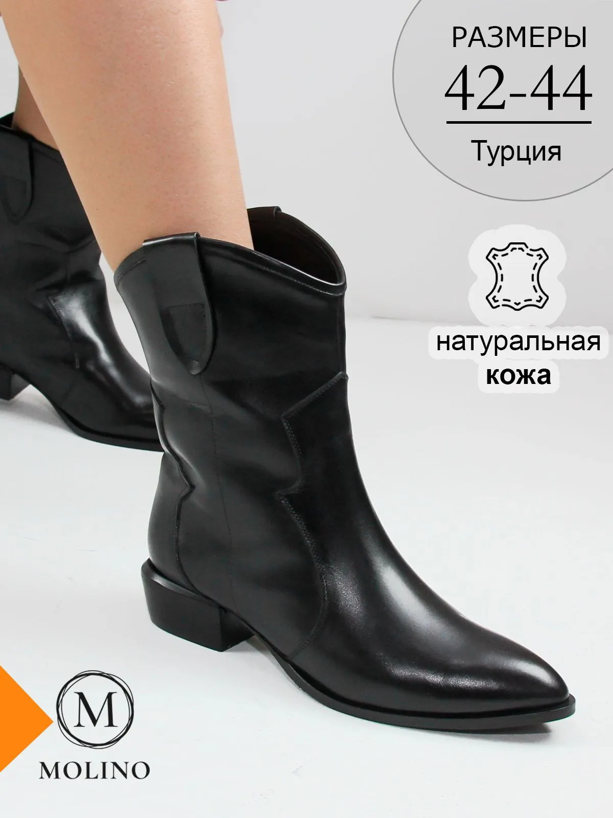 Внутри — мягкая утеплённая подкладка, подходящая для межсезонья и прохладной сухой погоды. Благодаря удобной колодке и устойчивой подошве кожаные казаки Molino обеспечивают комфорт на каждый день.