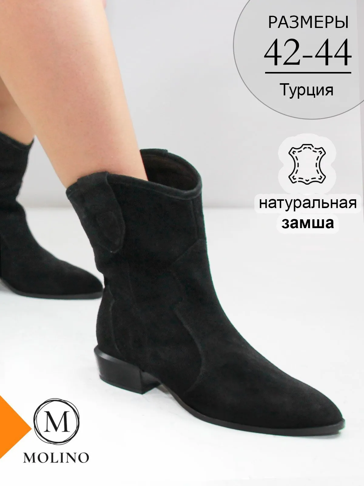 Внутри — мягкая утеплённая подкладка, подходящая для межсезонья и прохладной сухой погоды. Благодаря удобной колодке и устойчивой подошве замшевые казаки Molino обеспечивают комфорт на каждый день.