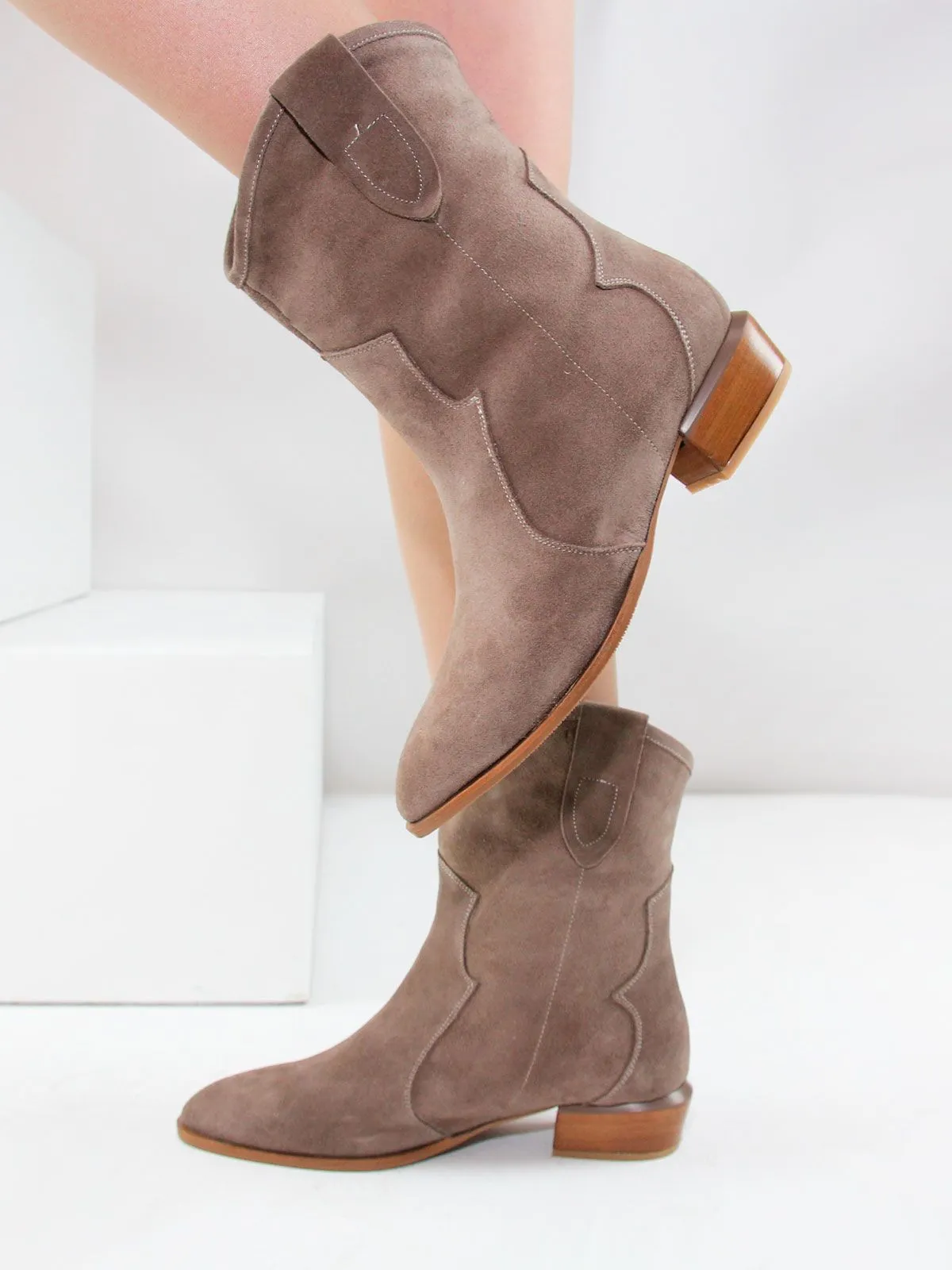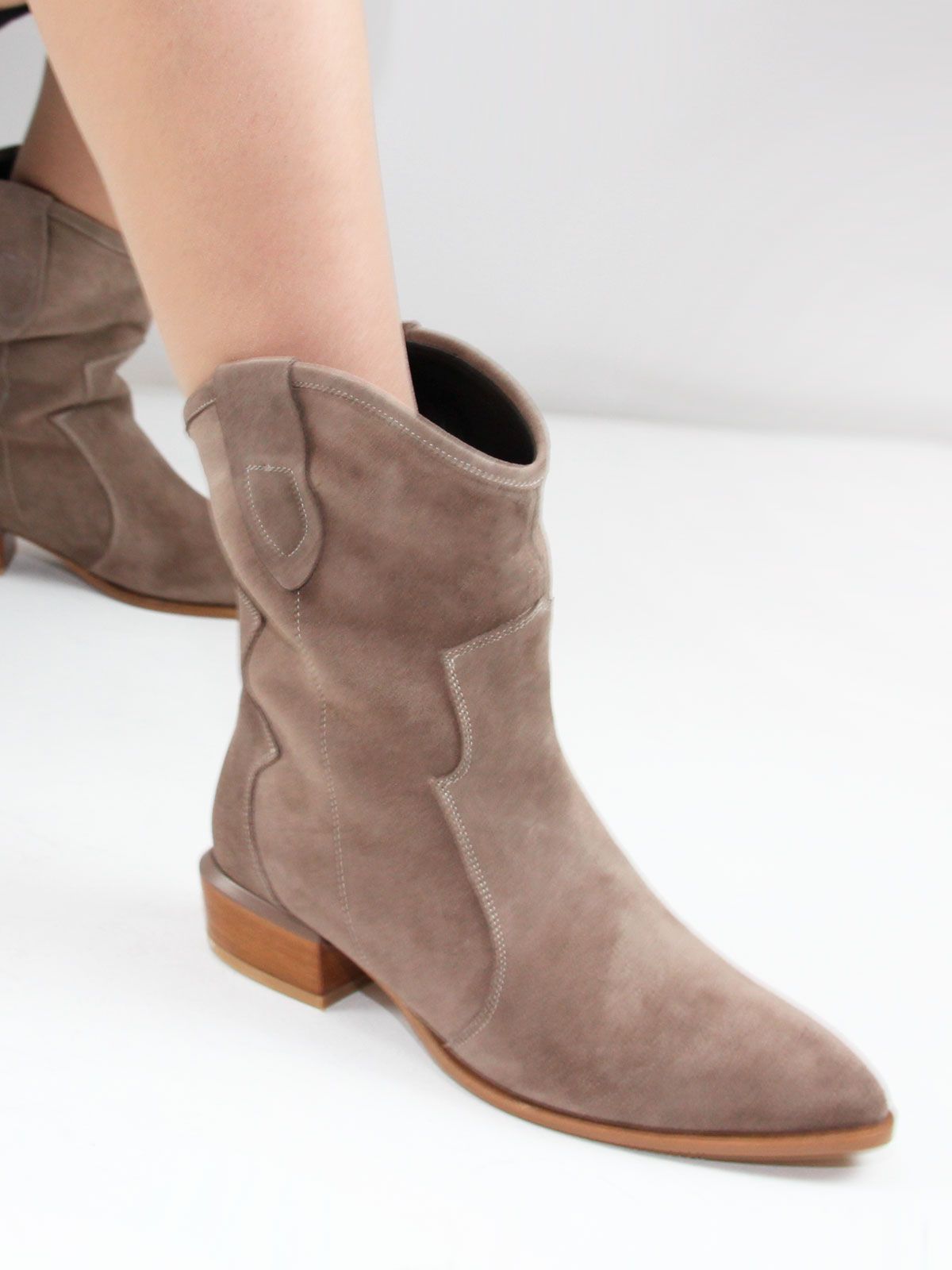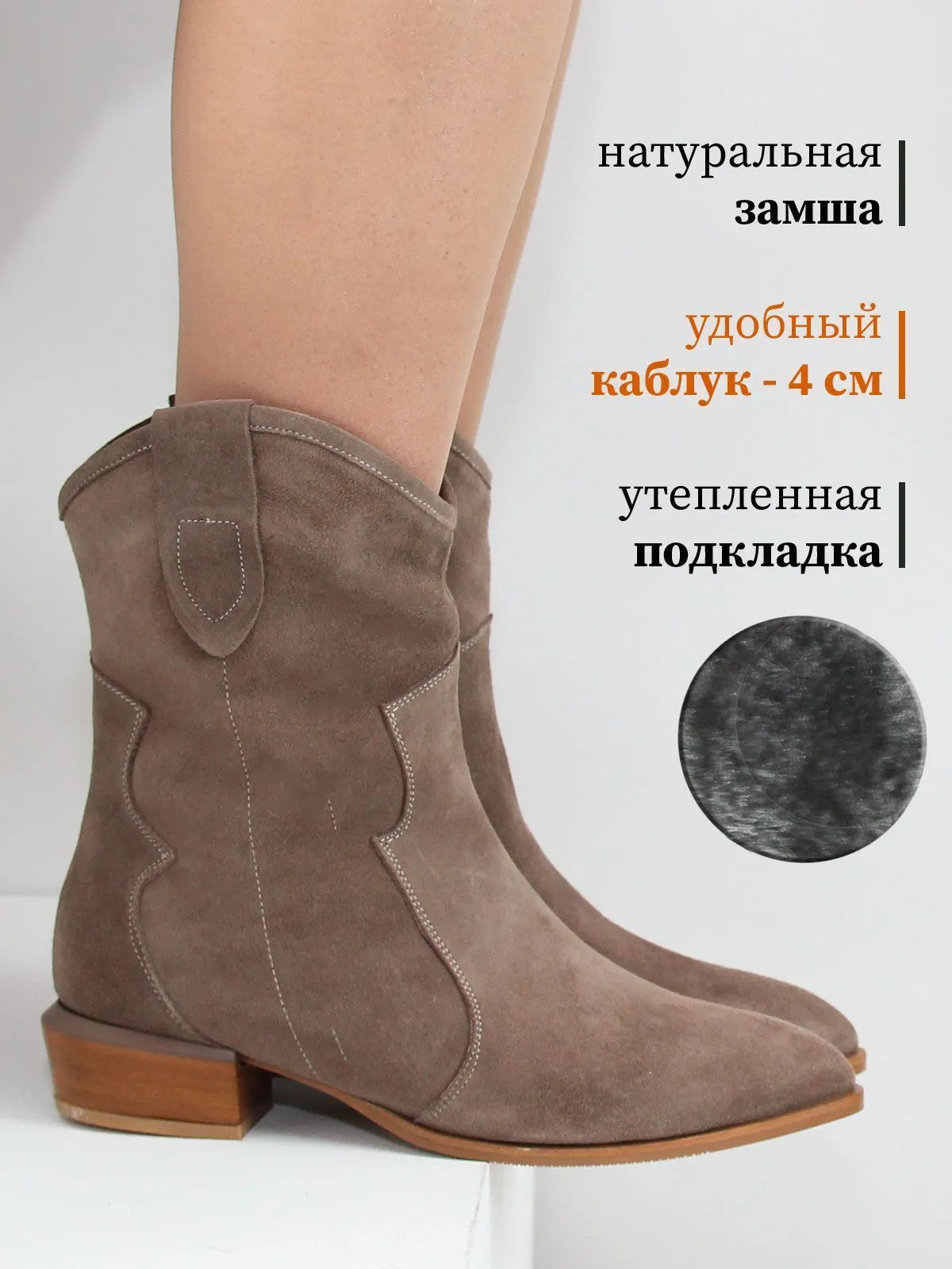 Женские замшевые серо-бежевые казаки больших размеров Molino 42–44. Утеплённые сапоги казаки женские демисезонные из натуральной замши — это идеальный выбор на осень и весну для женщин, которые ищут стильную, удобную и трендовую обувь больших размеров. Классический фасон замшевых казаков без бахромы на невысоком устойчивом каблуке с характерным вырезом, плавными линиями и удлинённым носком легко сочетается с пальто, юбками, джинсами или трикотажными платьями. Модель представлена в универсальной природной гамме — коричневые казаки в трендовом оттенке тёмный шоколад, бежевом и сером цветах, которые подойдут к любому гардеробу.