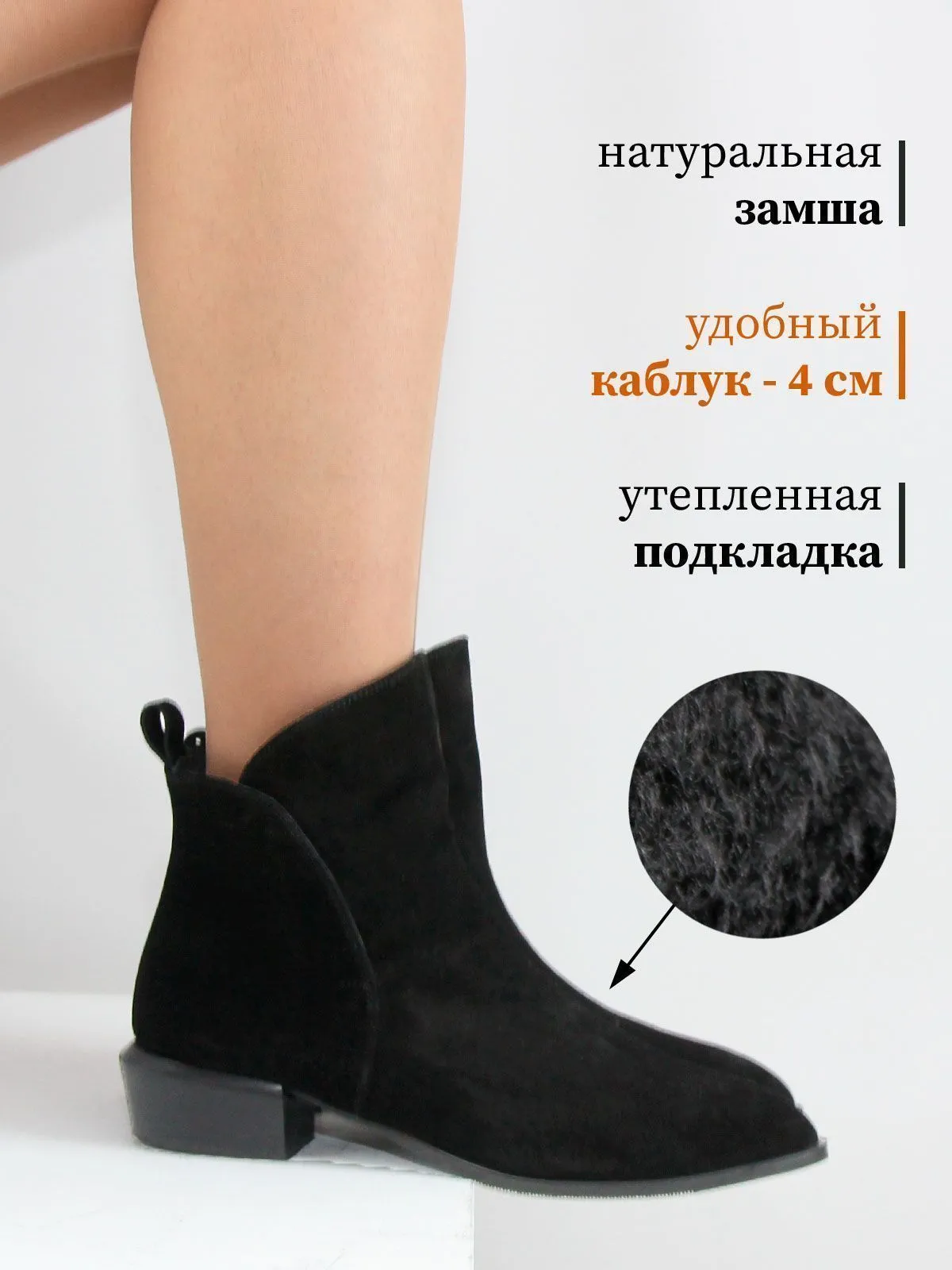Женские короткие казаки из натуральной замши без застёжки — стильная и трендовая обувь больших размеров 42–44