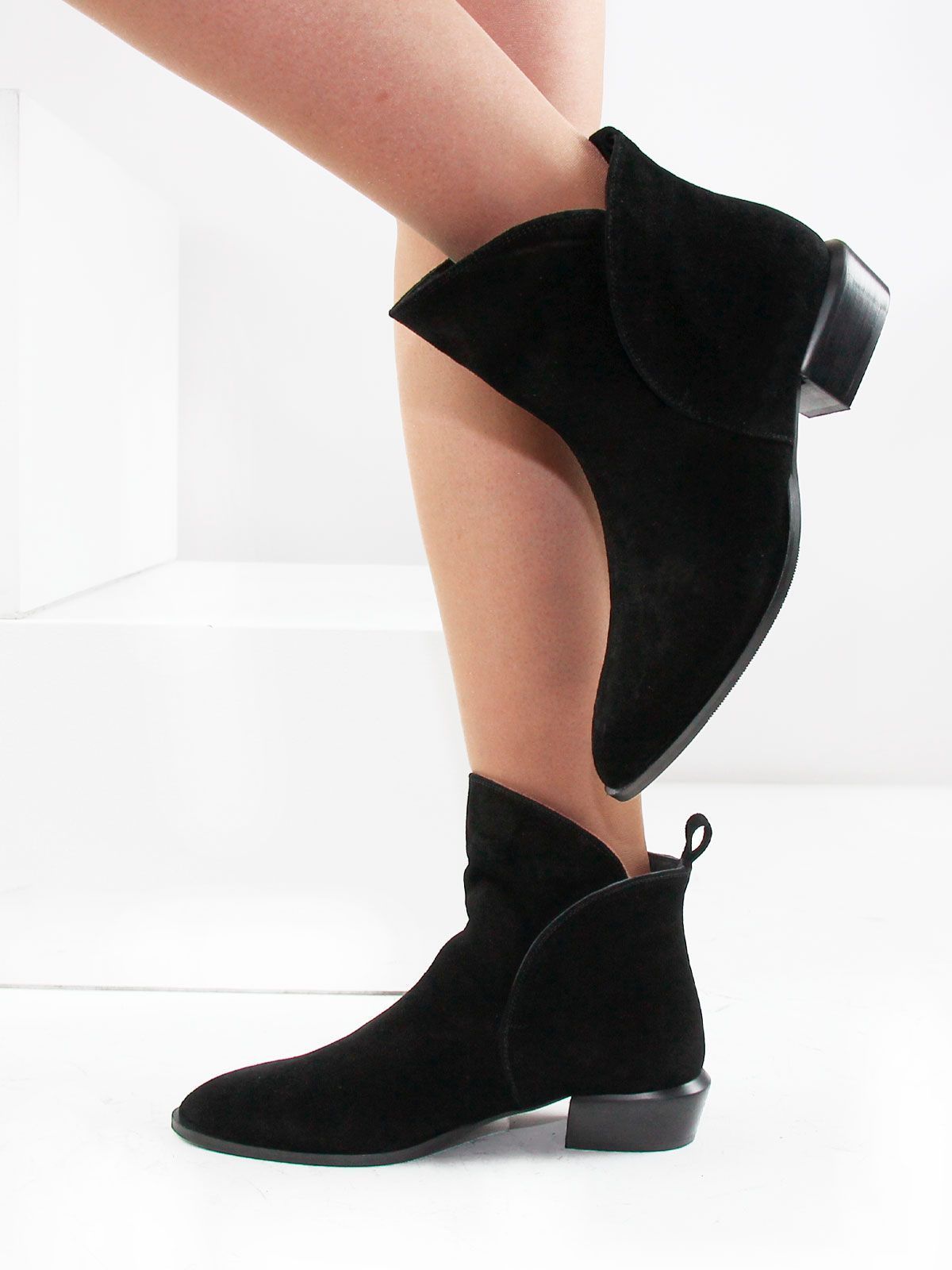 Благодаря лаконичному дизайну и комфортной посадке эти замшевые черный казаки подойдут как для повседневных образов, так и для прогулок, офиса или поездок.