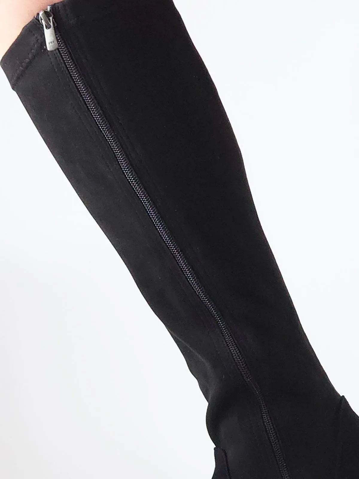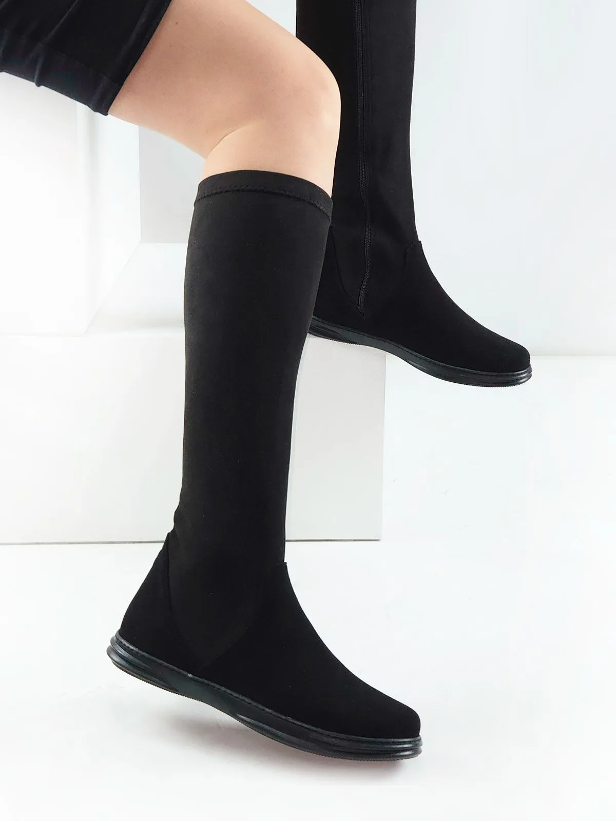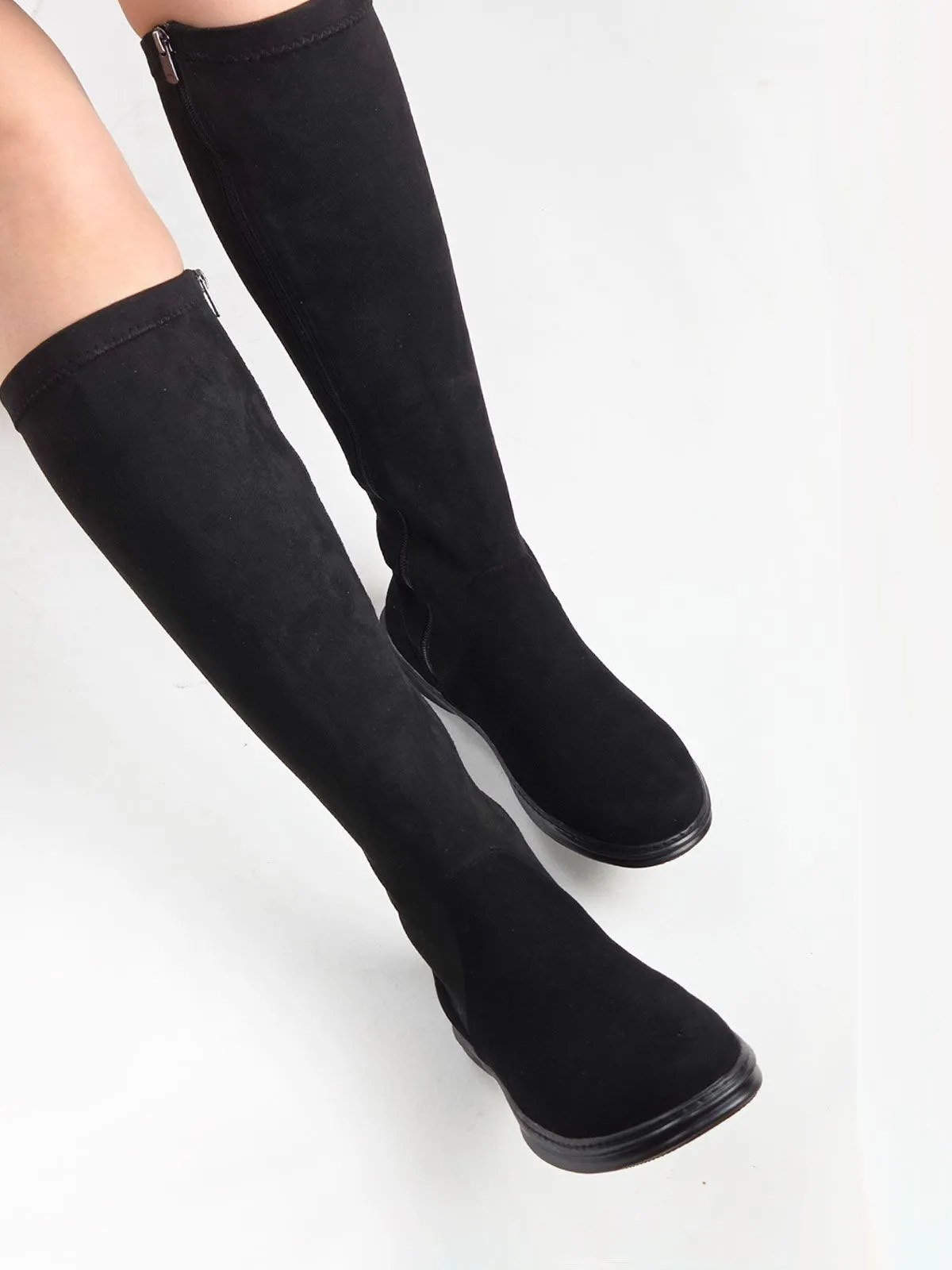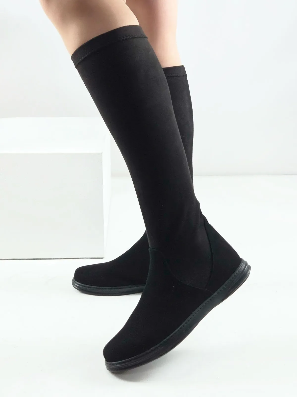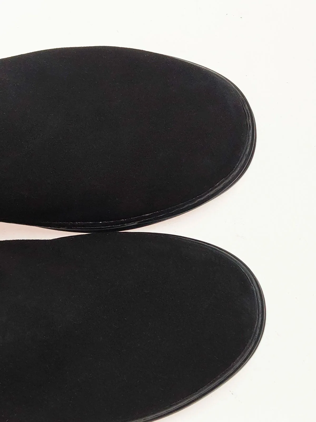 Модель скомбинирована из двух материалов: в области стопы — натуральная замша для надёжности и комфорта, а верх выполнен из эластичной стрейч-экозамши, которая красиво облегает ногу и подчёркивает силуэт.