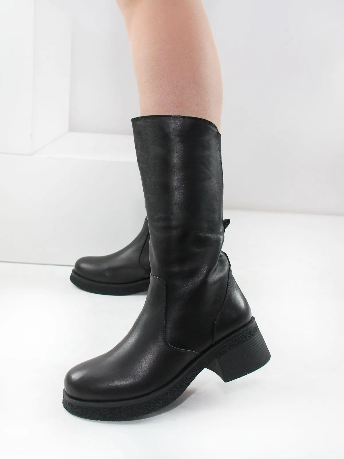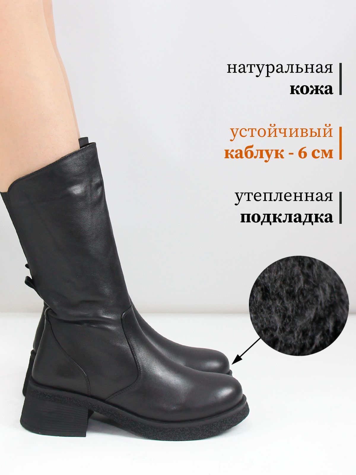 Женские сапоги из натуральной кожи с утеплённой подкладкой — обувь больших размеров 42–44.
