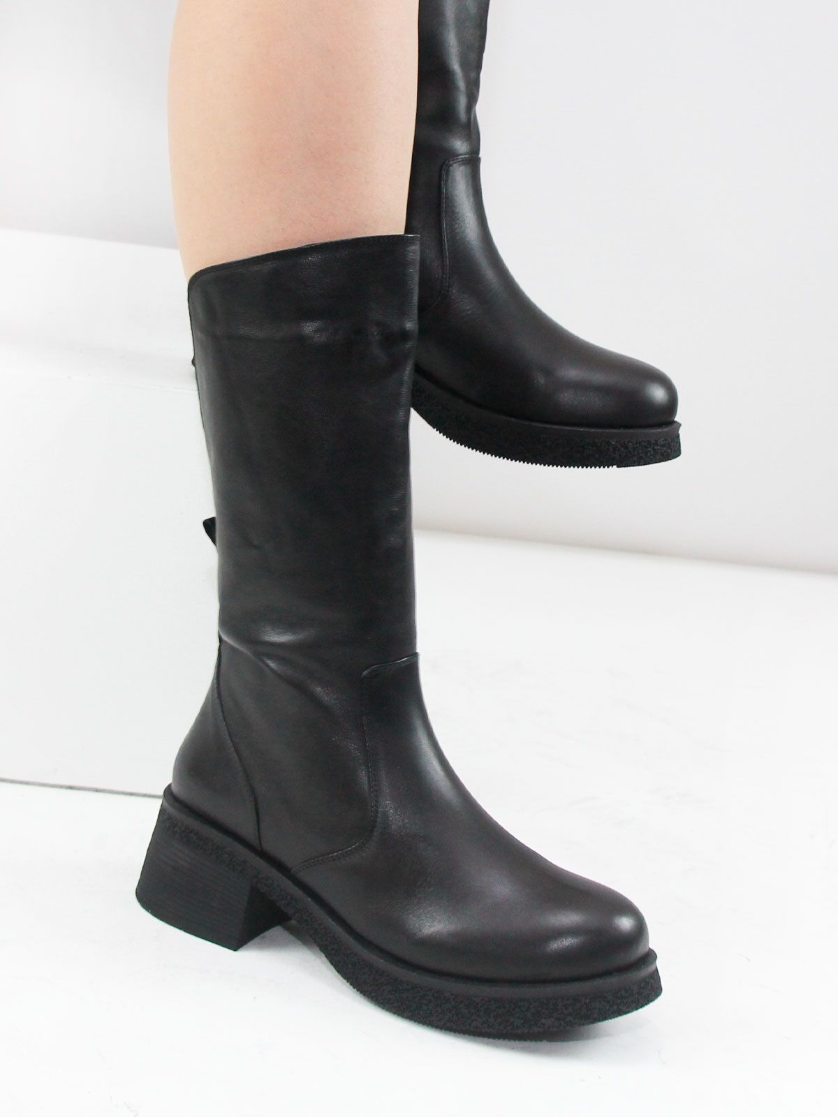 Дизайн выполнен без лишнего декора — лаконичные, стильные сапоги легко сочетаются с любым гардеробом.
