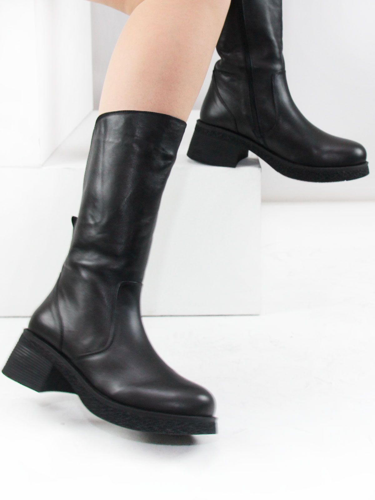 Слегка укороченное голенище удобно садится на ногу. Обхват в широкой части — 40 см.
