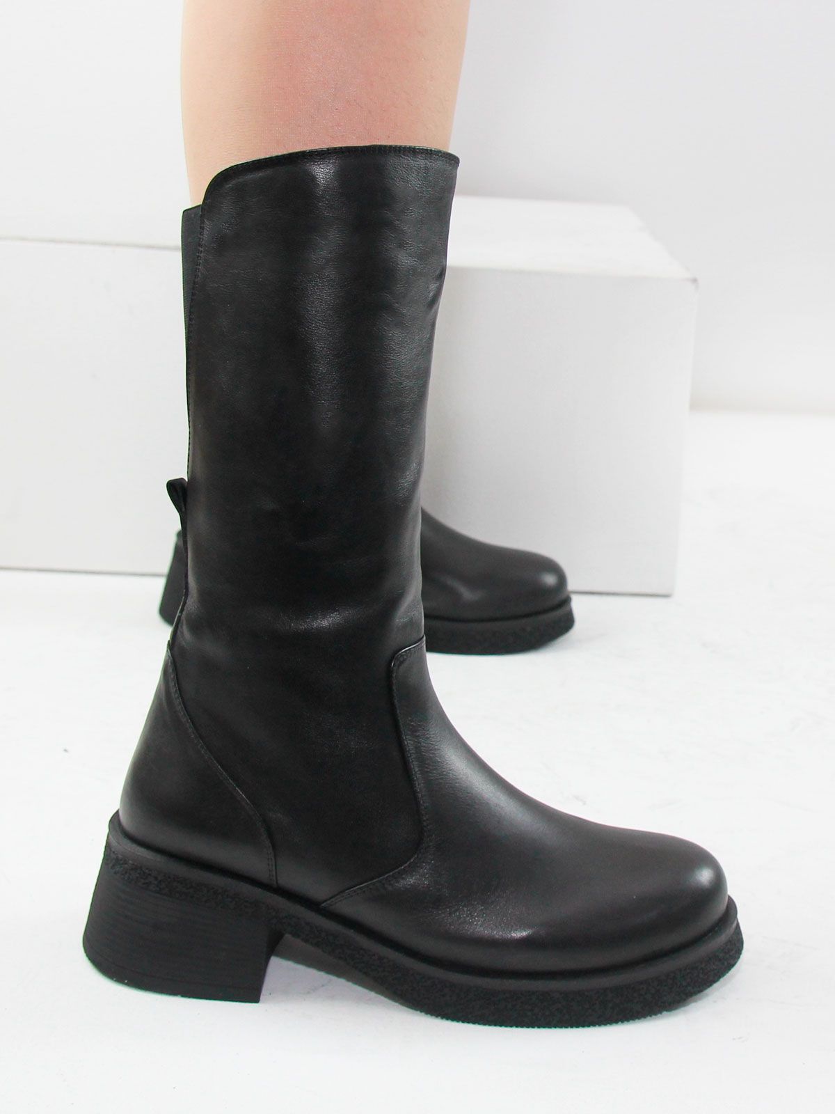 За счёт эластичной вставки сзади и боковой молнии сапоги легко надеваются и комфортно сидят даже при разной полноте икры.