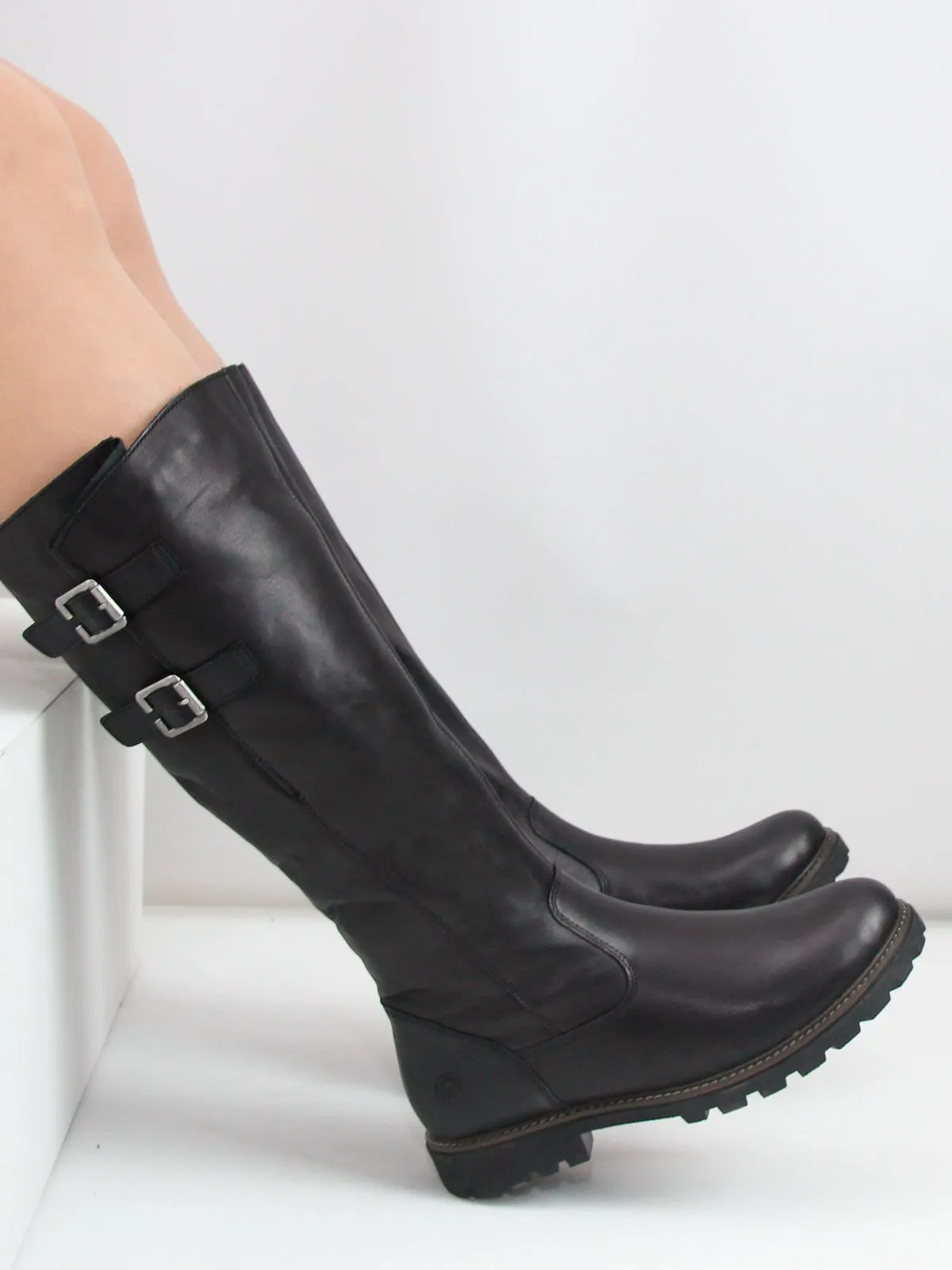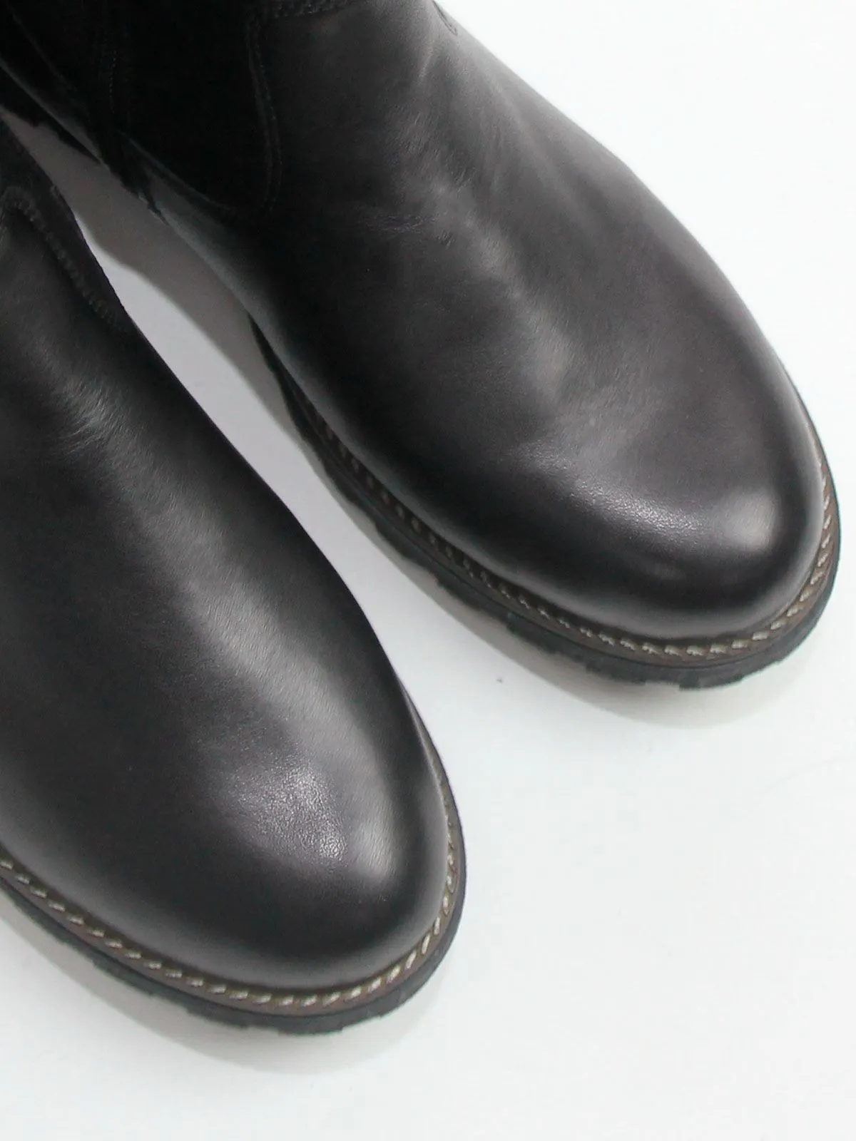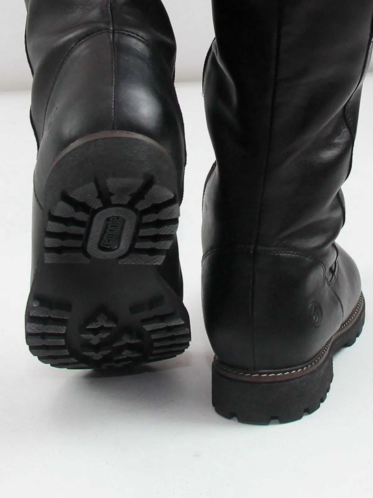 Классические зимние высокие сапоги Remonte больших размеров. Сапоги выполнены из натуральной черной гладкой кожи. Сбоку регулируемые застежки – пряжки для коррекции объема голени. Подкладка: верх – плотный шерстяной мех, в стопе – натуральный мех, мягкий и очень тёплый, который надёжно сохраняет тепло даже в морозную погоду.. Рельефная прорезиненная подошва. Сбоку - застежка молния. На модели размер - 42.