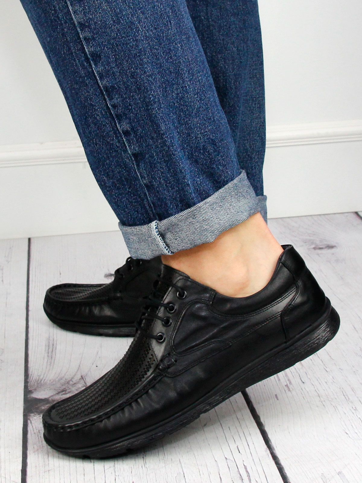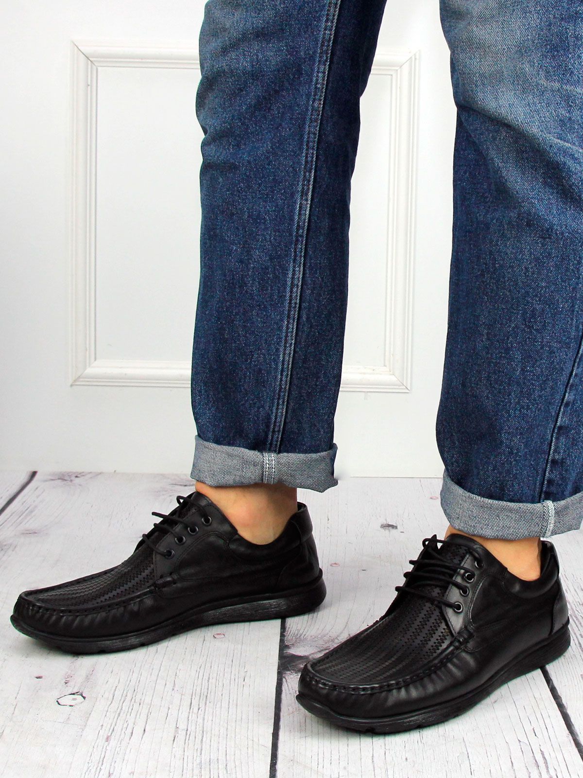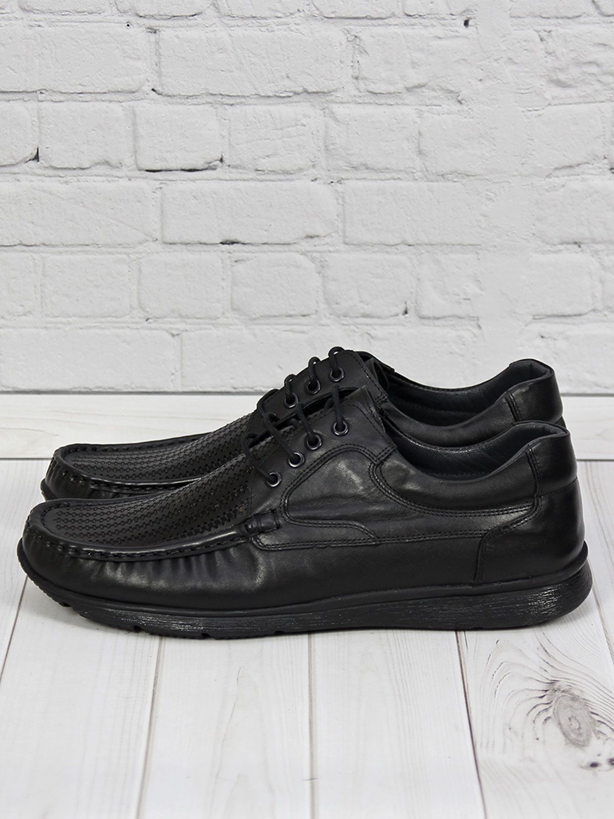 Мужские черные топсайдеры больших размеров из натуральной кожи. Очень мягкие, подойдут на широкую стопу. В такой обуви ногам легко и комфортно благодаря внутренней отделке из кожи, а правильная посадка дарит максимальный комфорт движения. Топсайдеры - это туфли на гибкой плоской подошве, по внешнему виду топсайдеры очень похожи на мокасины,но со шнуровкой сверху. Надежная подошва гарантирует уверенность в каждом шаге даже на скользких покрытиях, оставаясь гибкой и мягкой. Удобная посадка позволяет легко переобуваться за пару секунд.