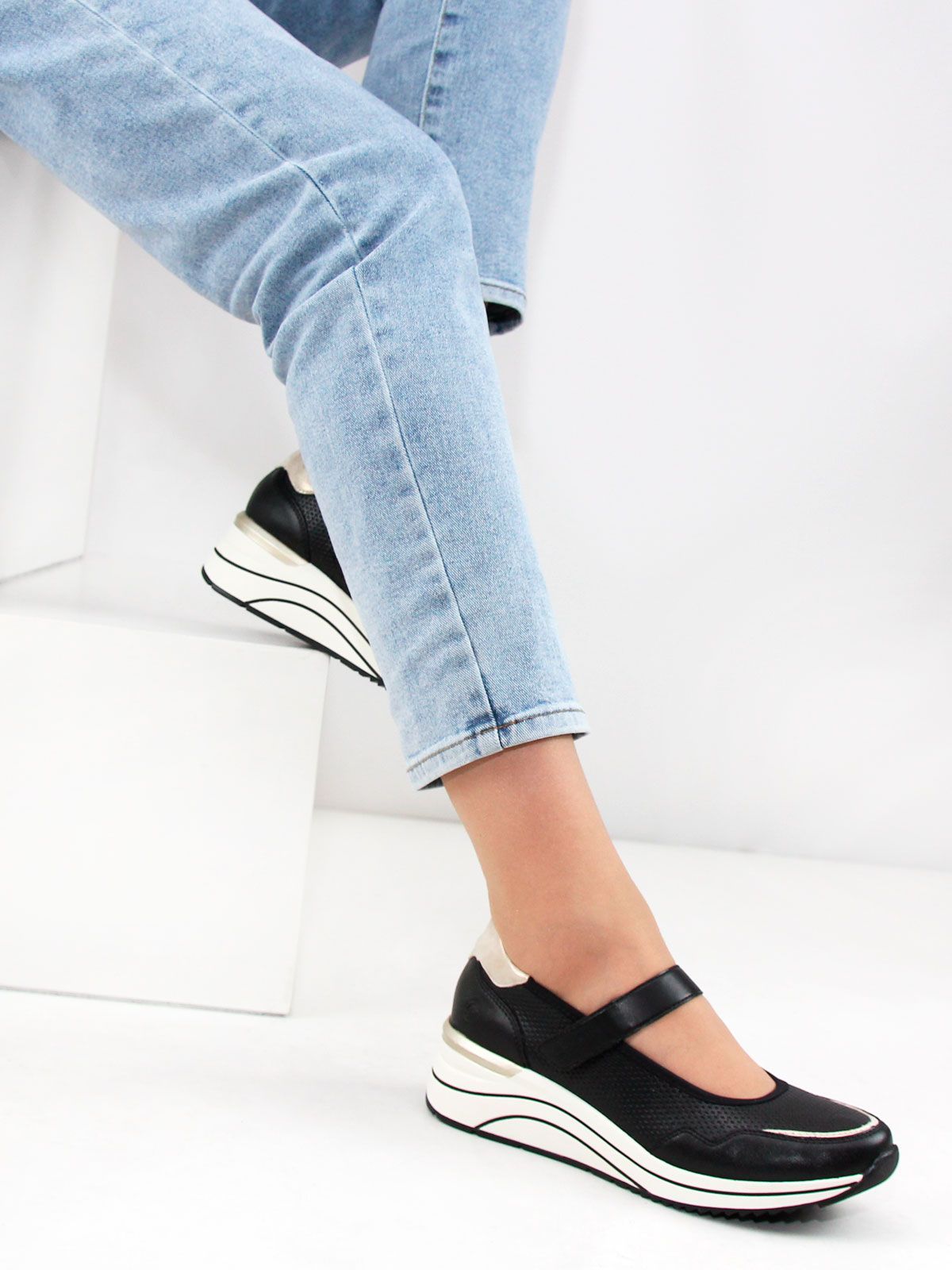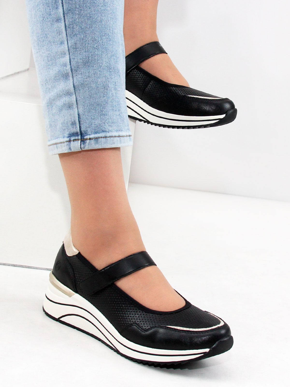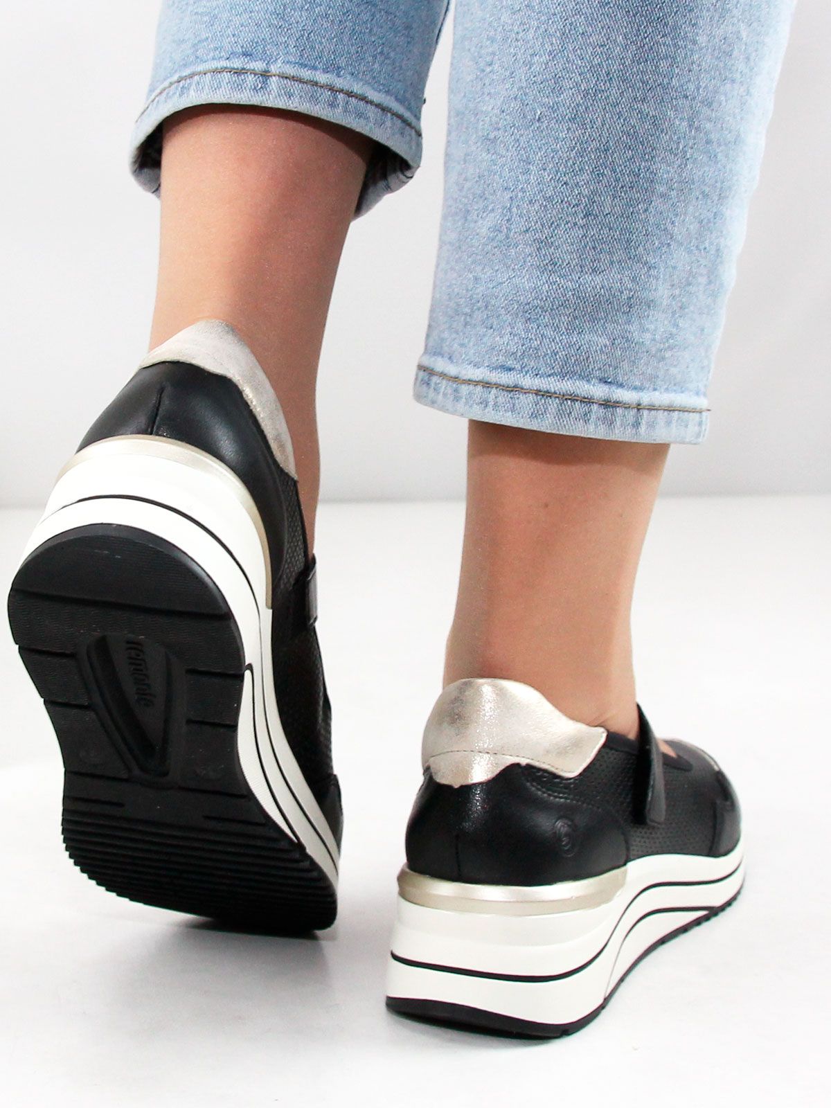 Представляем Вам черные женские спортивные туфли Remonte большого размера, которые идеально сочетают стиль и комфорт. Эти туфли имеют мягкую стельку, что обеспечивает максимальное удобство при носке.