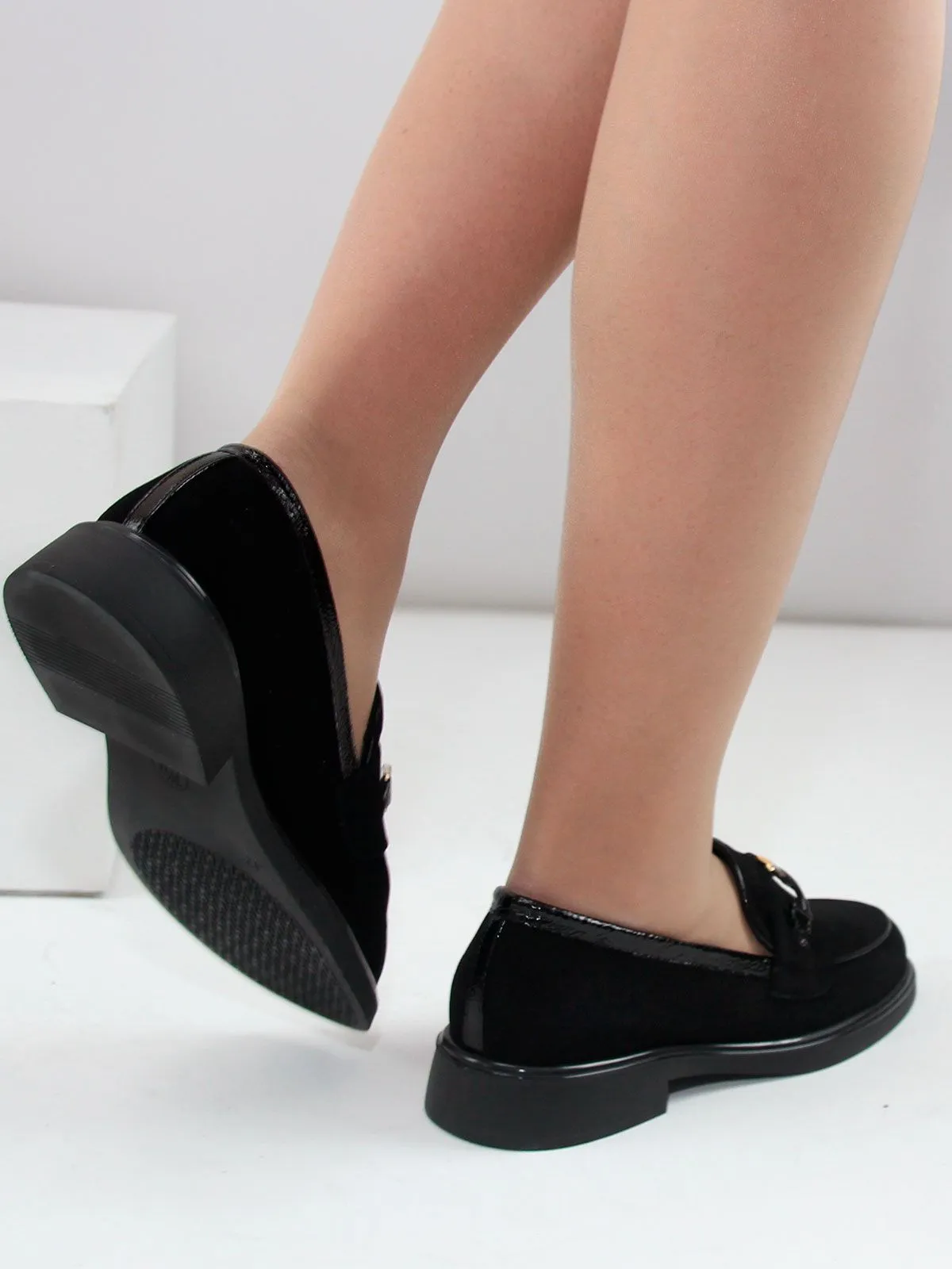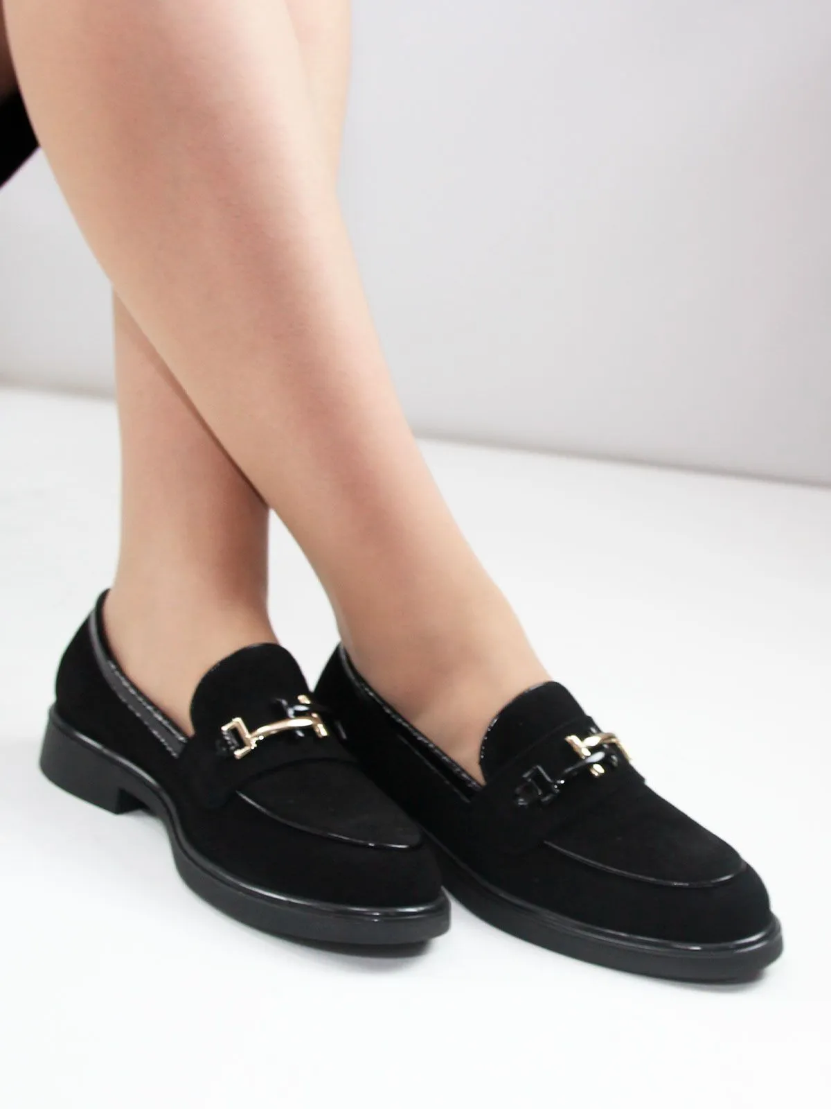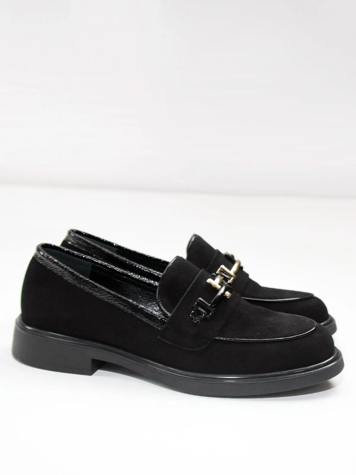 Классический силуэт лоферов дополнен аккуратной декоративной пряжкой, которая придаёт модели выразительность и делает дизайн более стильным. Невысокий устойчивый каблук обеспечивает комфорт при ходьбе и позволяет носить обувь в течение всего дня. Натуральная замша мягко адаптируется к форме стопы и создаёт комфорт при длительной носке.