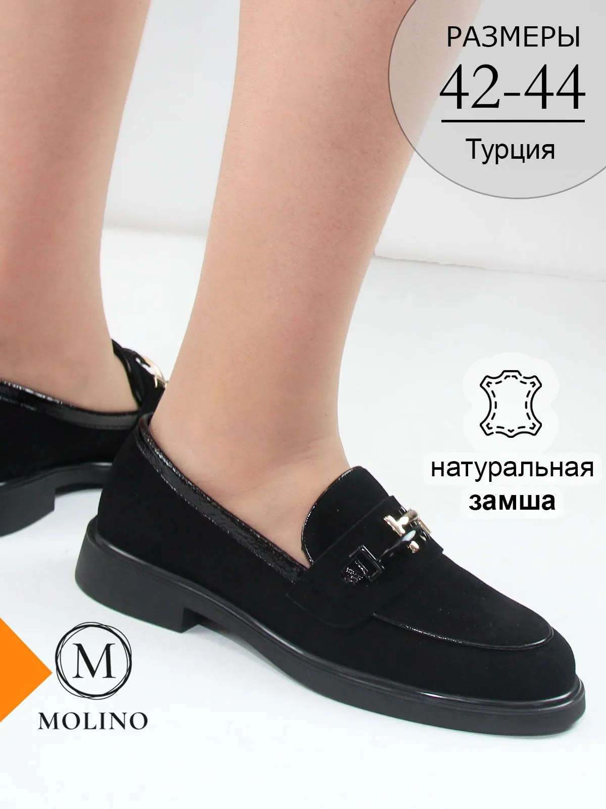 Модель относится к категории обувь больших размеров и представлена в размерах 42, 43 и 44. Лоферы отлично подойдут для повседневной носки, деловых и городских образов. Модель маломерит, поэтому рекомендуется ориентироваться на размерную сетку при выборе. Производство — Турция. Бренд Molino. Стильная и комфортная женская обувь больших размеров.