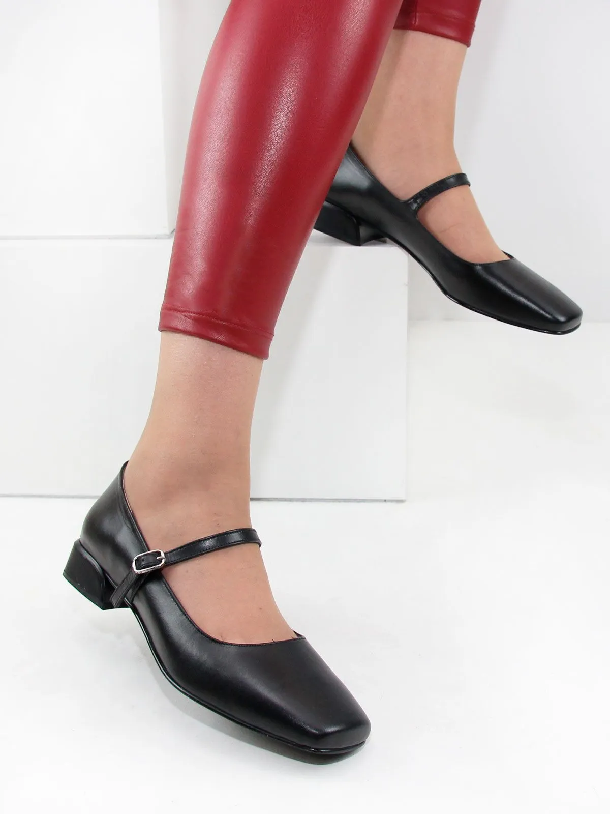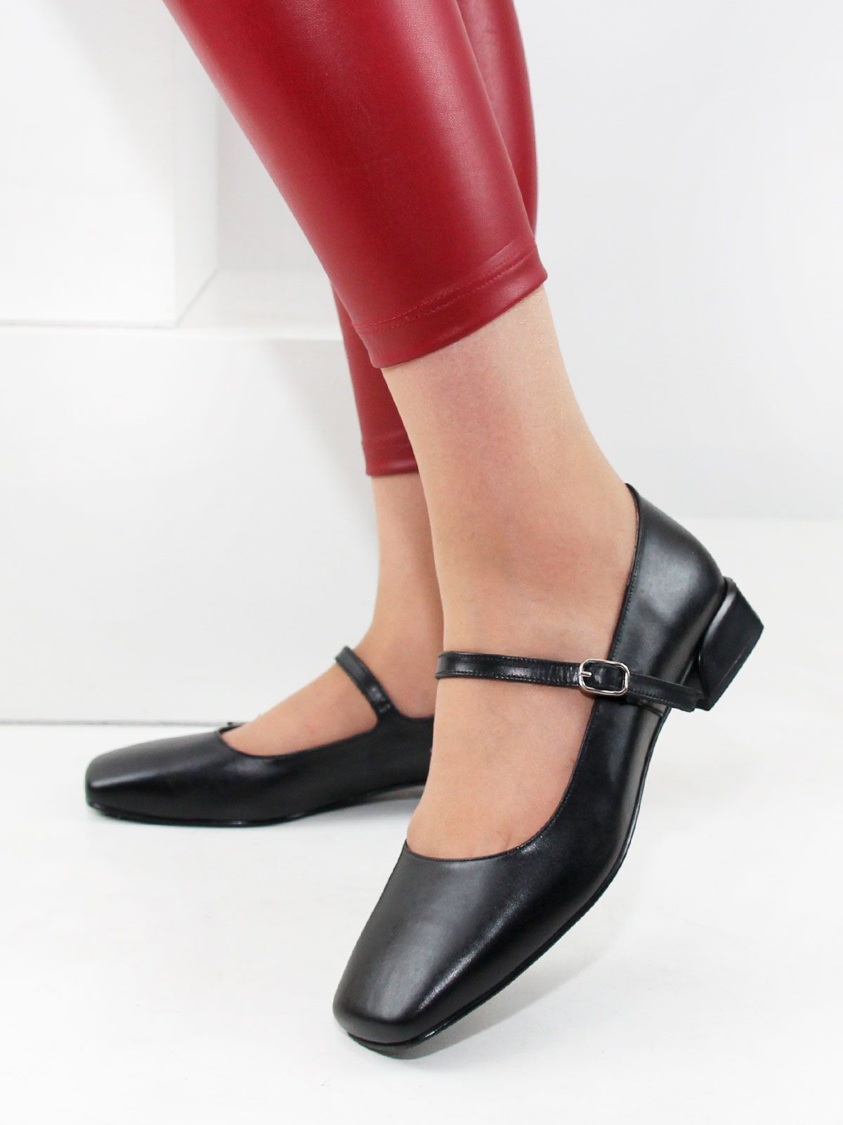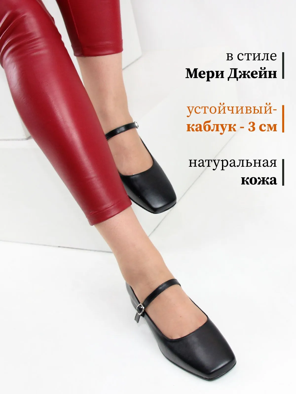 Стильные туфли на низком каблуке в стиле Мери Джейн. Туфли большого размера с ремешком выполнены из мягкой натуральной матовой кожи черного цвета, не маломерят.Производство - Турция.