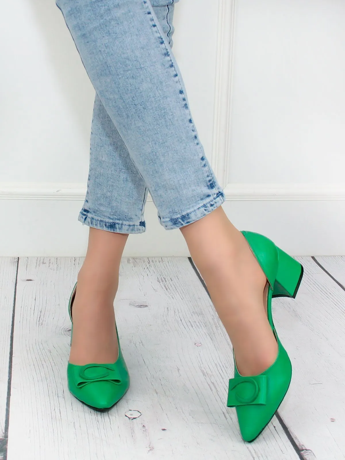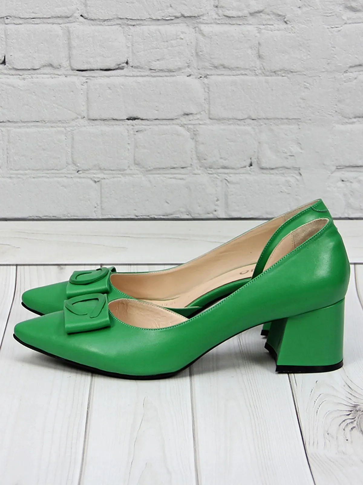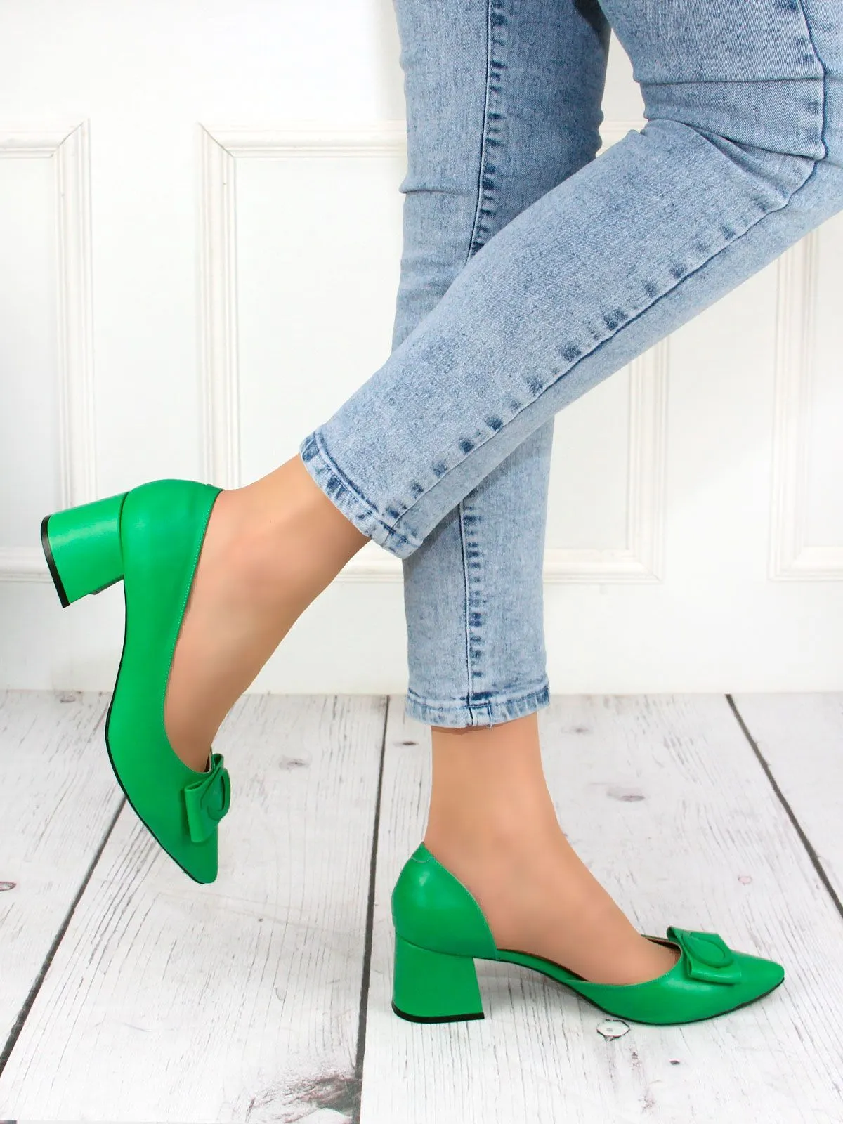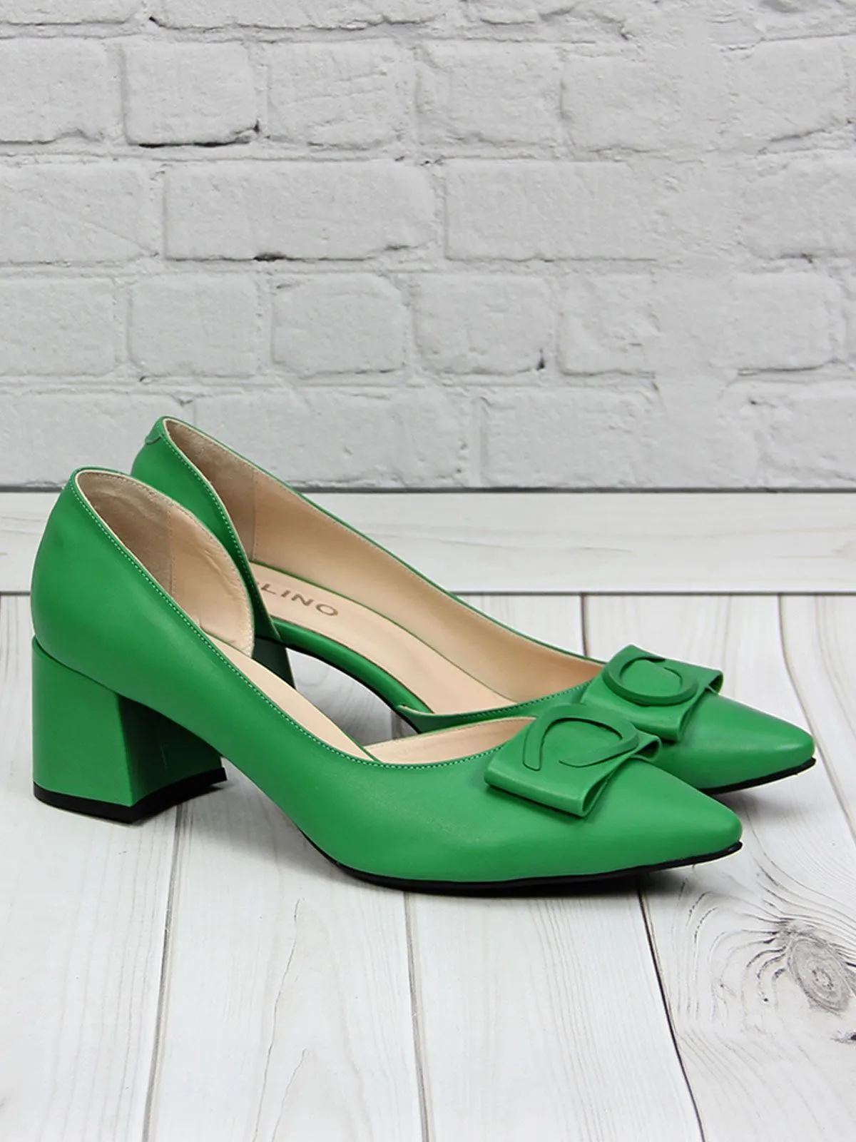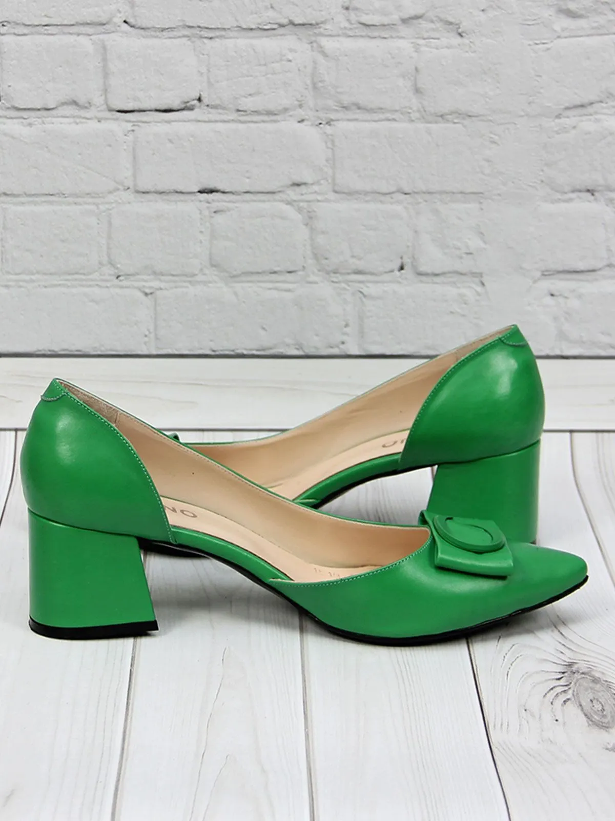 Стильные женские открытые туфли большого размера из натуральной кожи. Зеленый цвет - хит сезона. Подойдут на стандартную и узкую стопу.