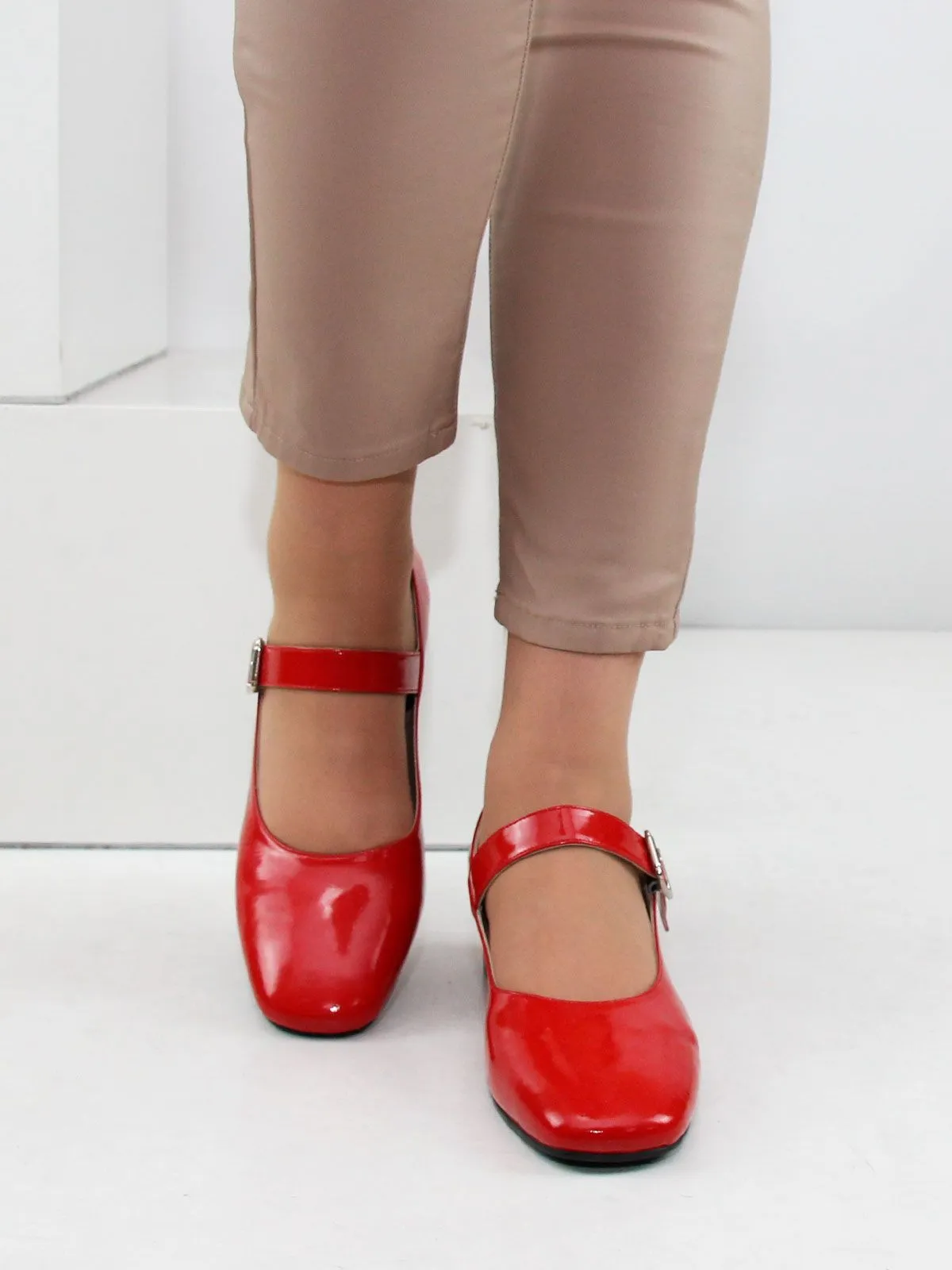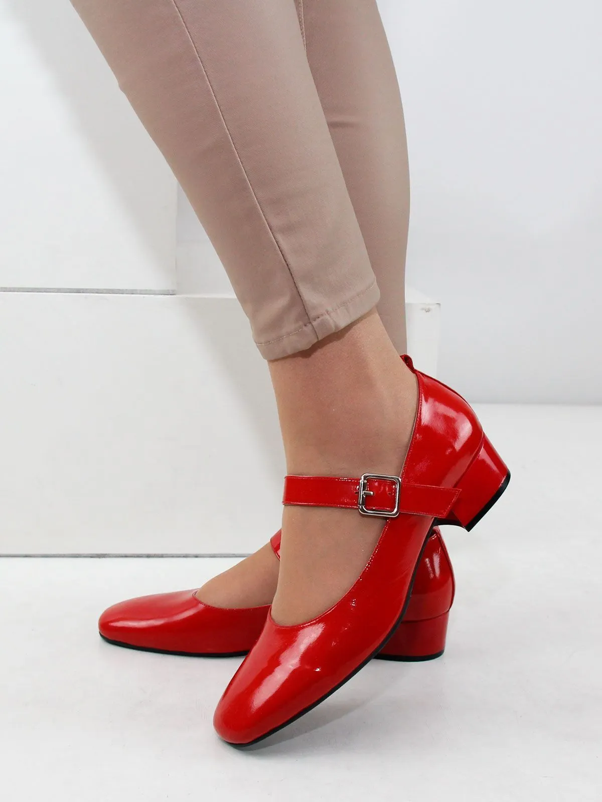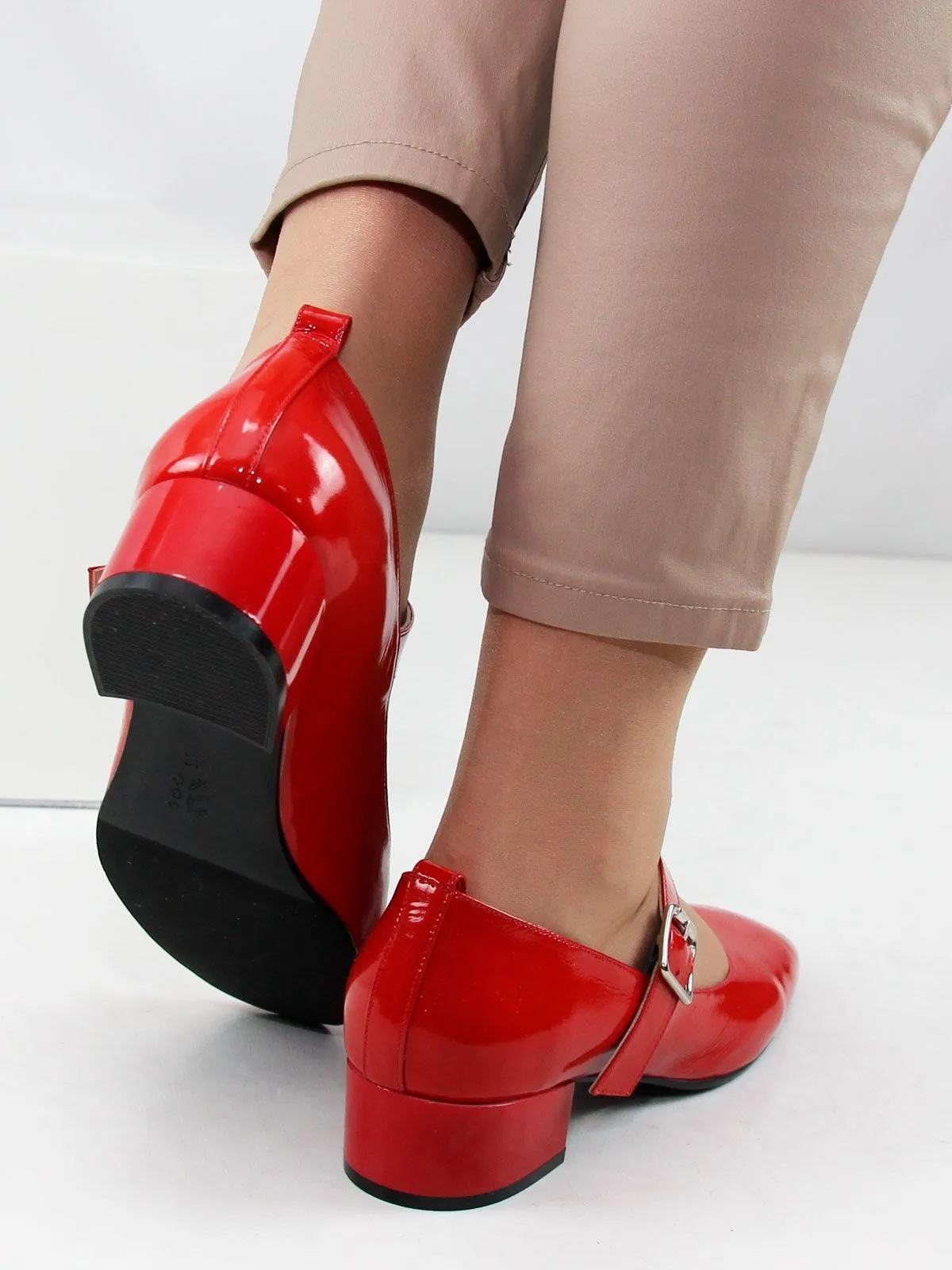 Классический ремешок с застёжкой фиксирует стопу и делает посадку надёжной, а устойчивый каблук высотой 4 см обеспечивает комфорт при длительной носке.