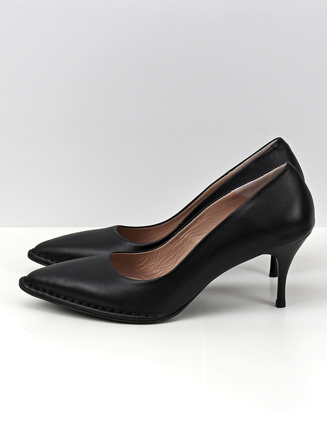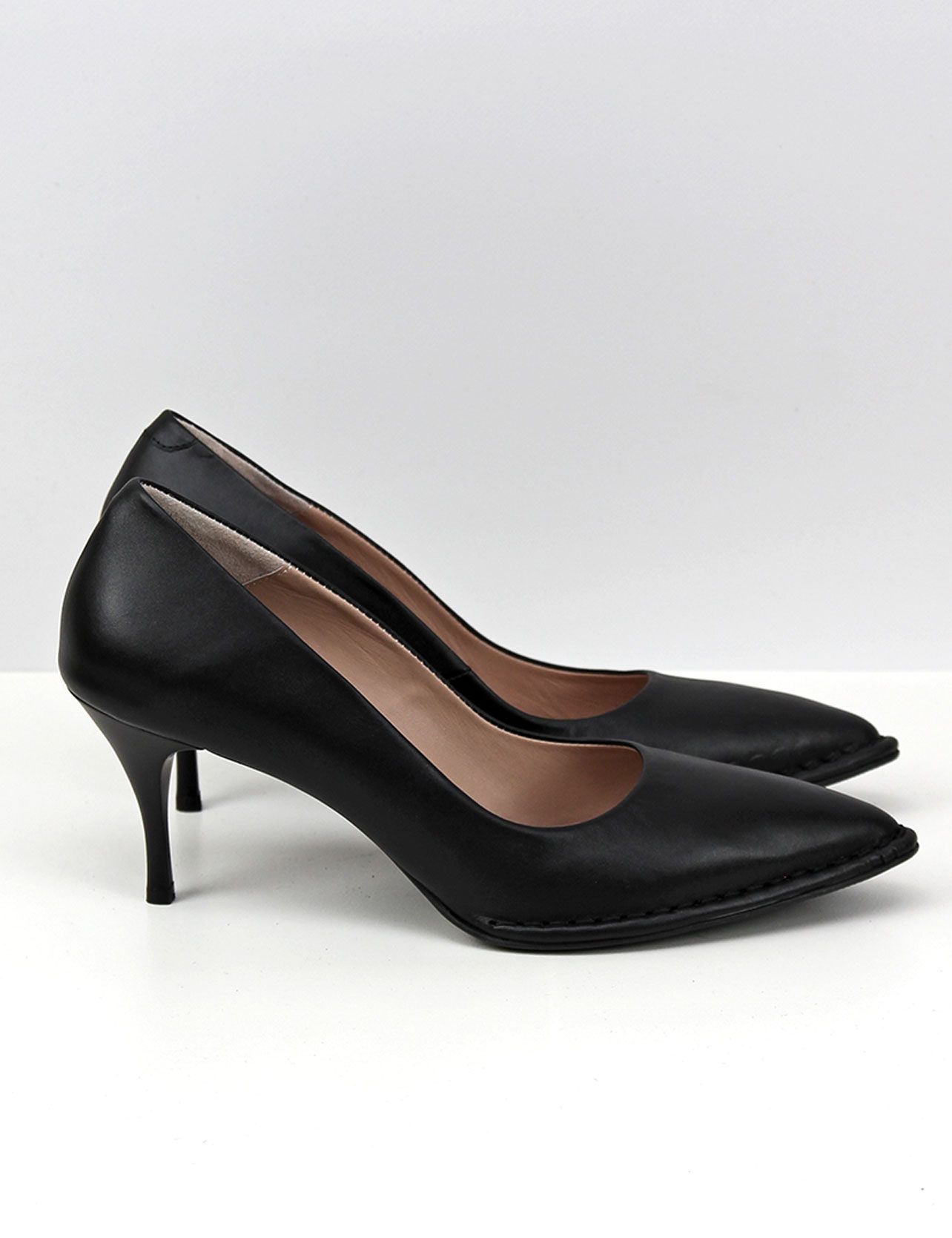 Витринный образец. Небольшая потертость на коже с внутренней стороны. Стильные черные туфли большого размера на шпильке из натуральной кожи. Подойдут на стандартную стопу.Подкладка - натуральная кожа.