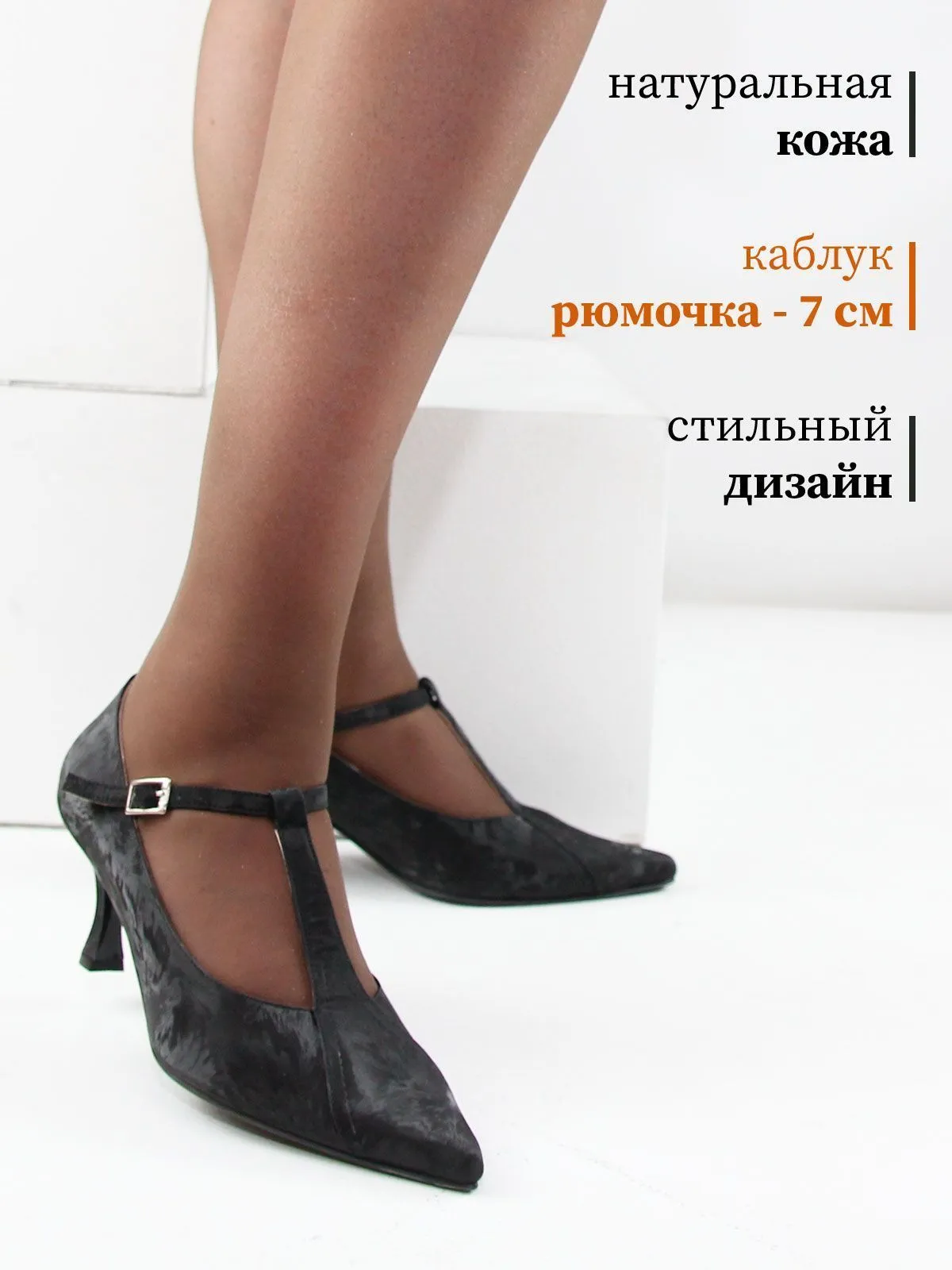 Стильные туфли-лодочки больших размеров из черной натуральной кожи на каблуке-шпильке 7 см. Подкладка - натуральная кожа. Производство Турция.