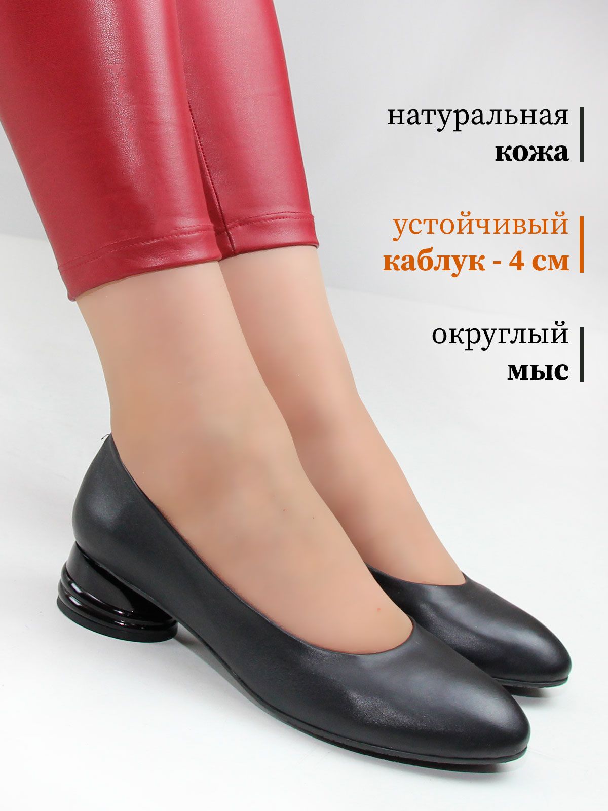 Стильные туфли большого размера из натуральной матовой кожи на невысоком устойчивом каблуке. Черные туфли лодочки средней полноты с округлым мысом подойдут на стандартную стопу. Подкладка - натуральная кожа. Каблук - черного цвета. Производство - Турция.