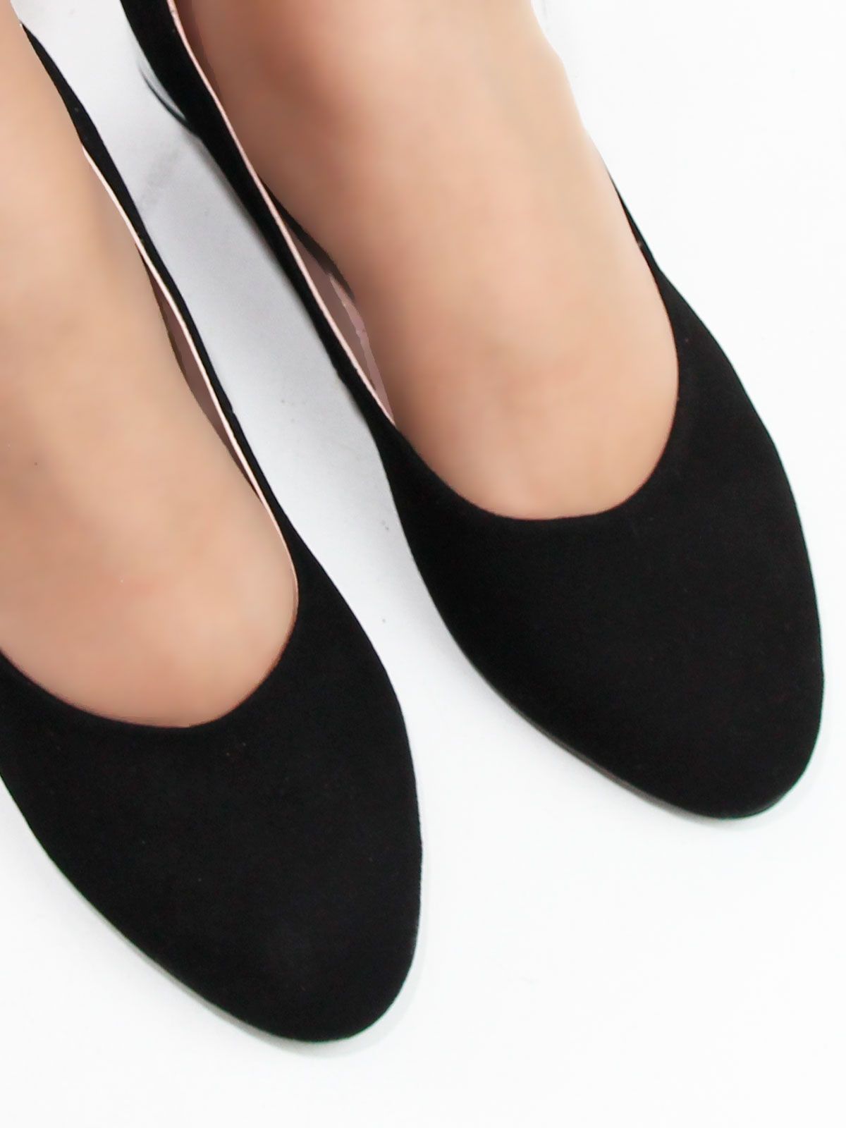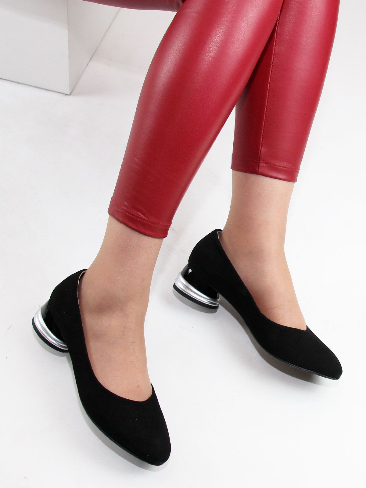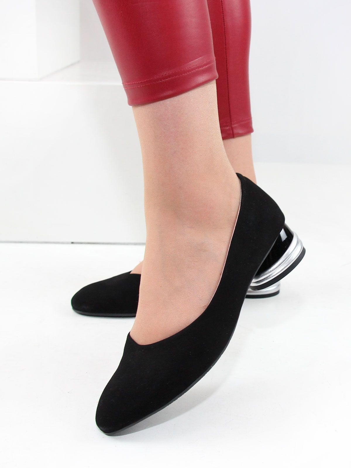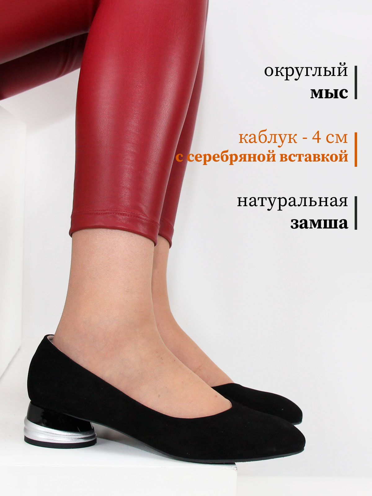 Стильные туфли большого размера из натуральной замши на невысоком устойчивом каблуке. Черные туфли лодочки средней полноты с округлым мысом подойдут на стандартную стопу. Подкладка - натуральная кожа. Каблук - с серебристой вставкой. Производство - Турция.