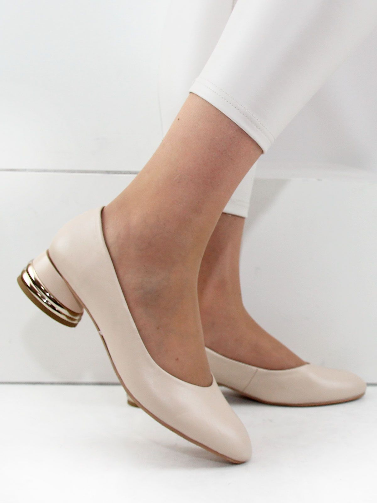 Уценка. Витринный образец. Стильные туфли большого размера из натуральной матовой кожи на невысоком устойчивом каблуке. Туфли лодочки светло-бежевого цвета средней полноты с округлым мысом подойдут на стандартную стопу. Подкладка - натуральная кожа. Каблук - в цвет обуви с золотистой вставкой. Производство - Турция.