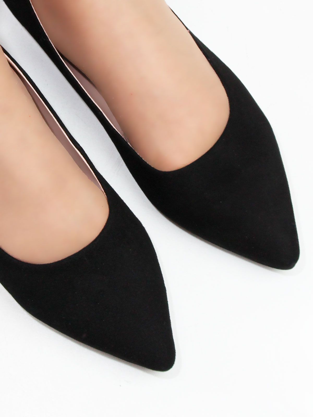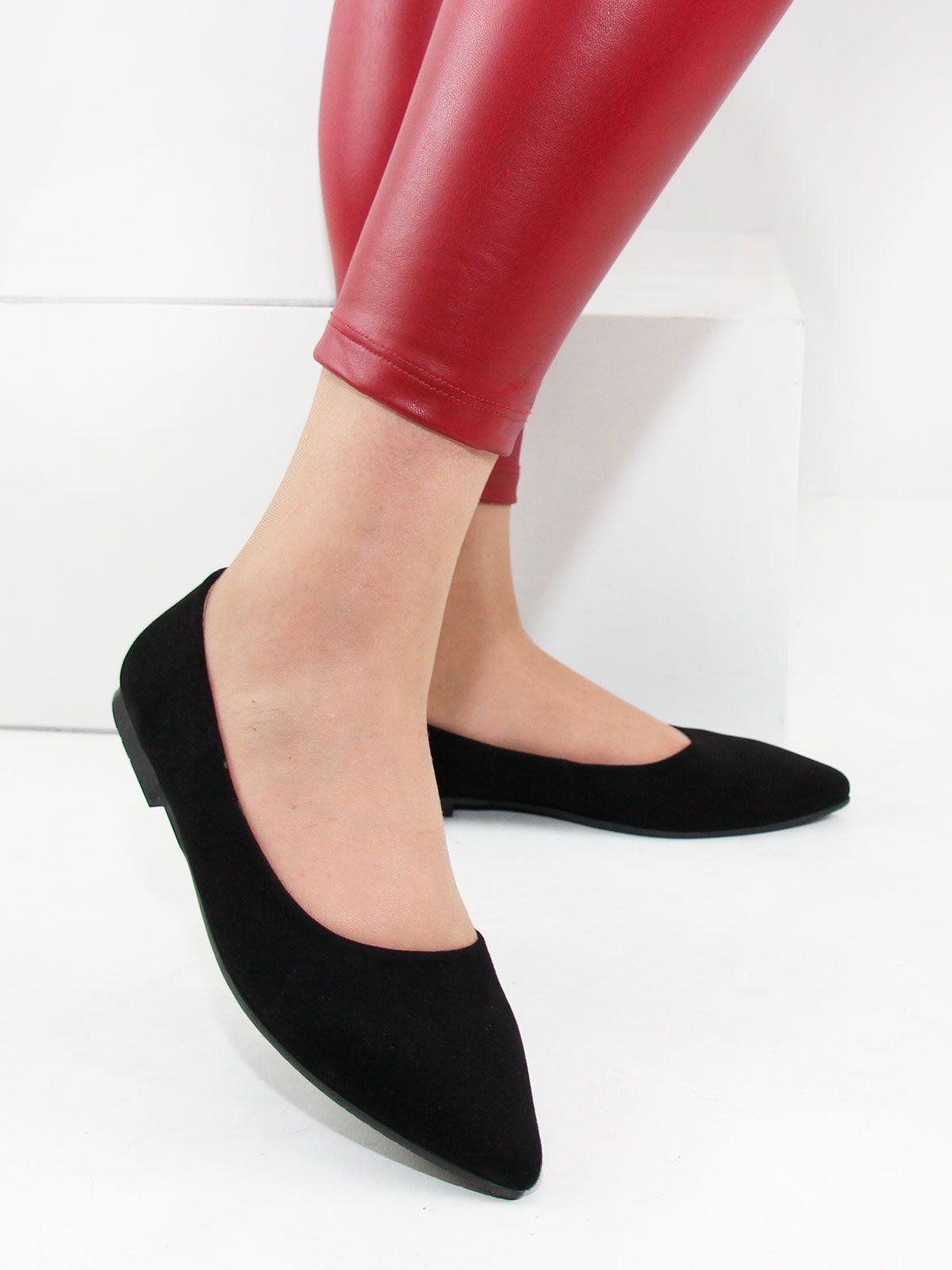Классические туфли женские большого размера из натуральной замши без декора. Балетки с острым мысом на низком каблуке, 1 см, выполнены из черной замши. В мысочной части - мягкая стелька для дополнительно комфорта при хотьбе. Производство - Турция. на модели - 42 размер.