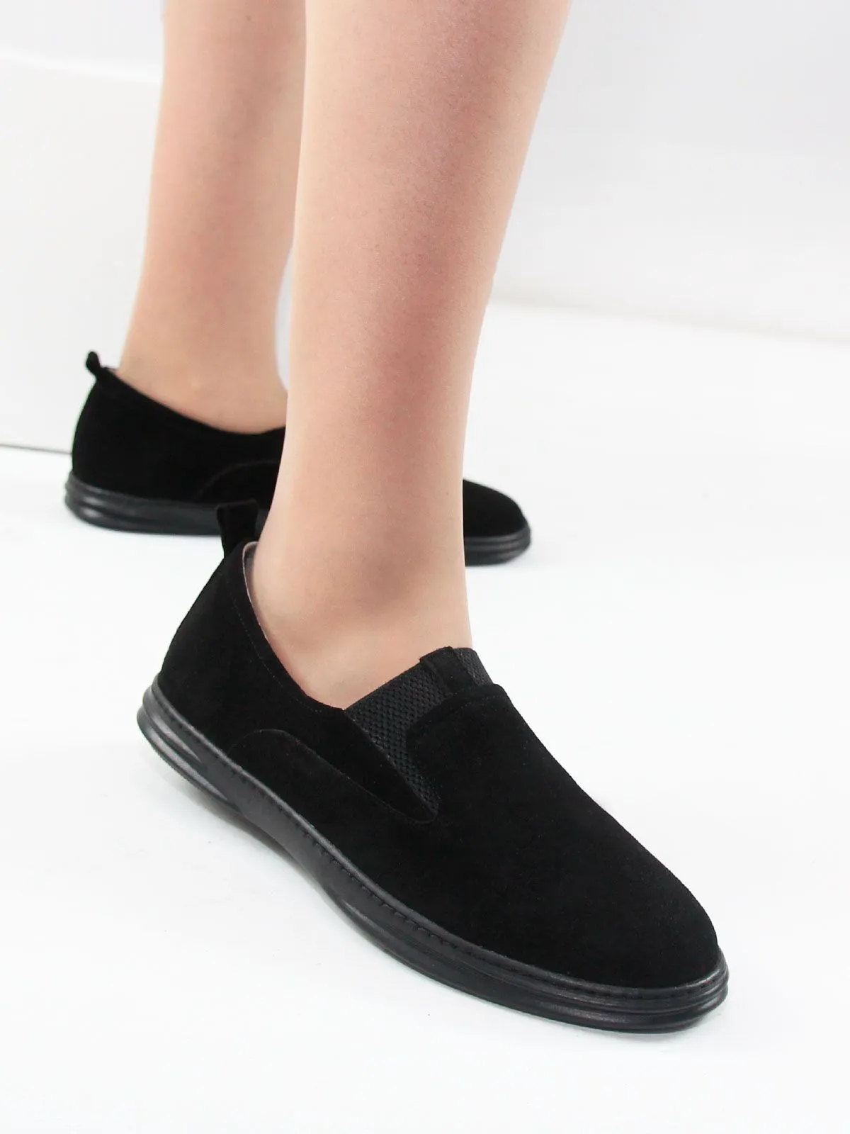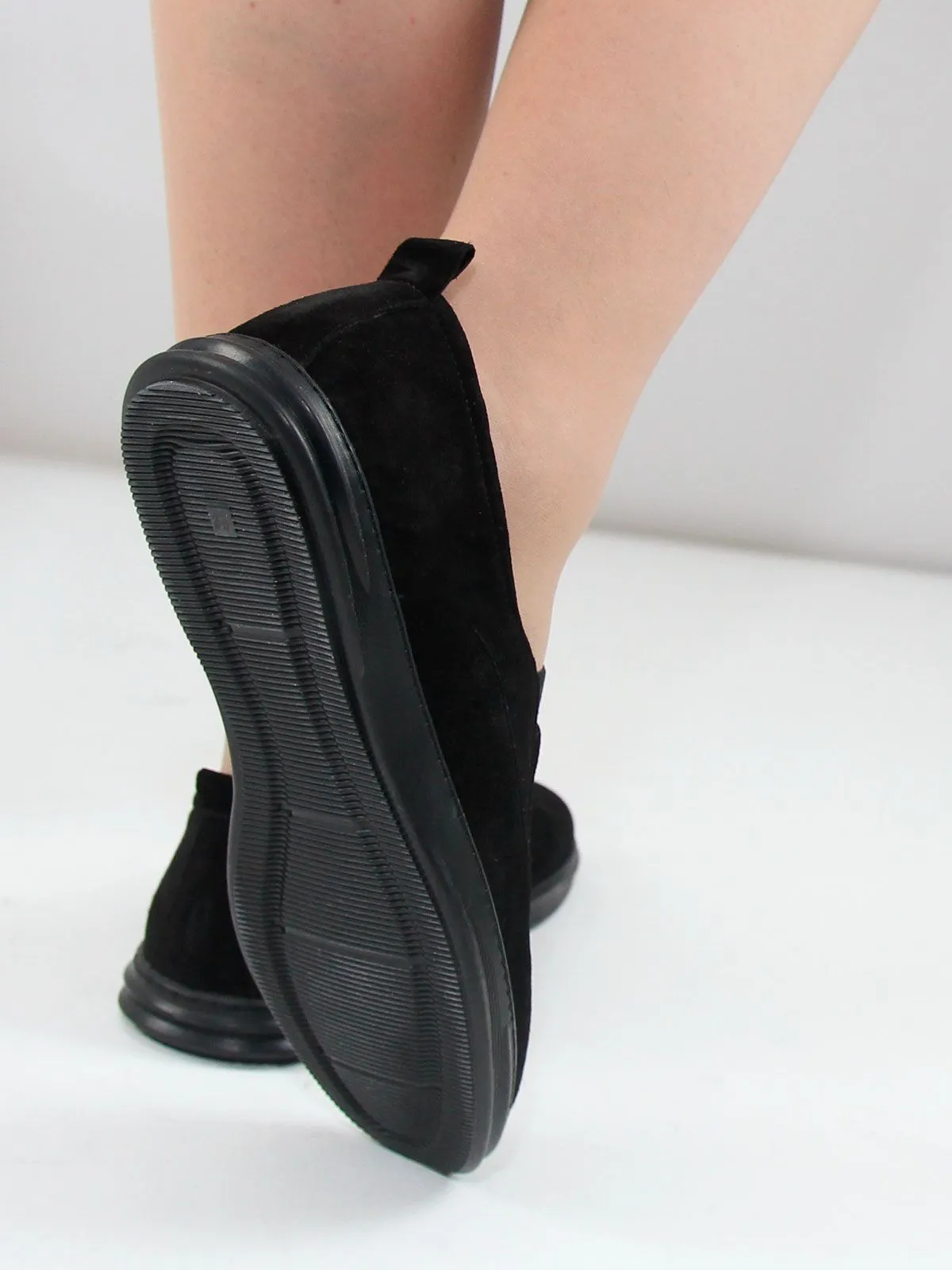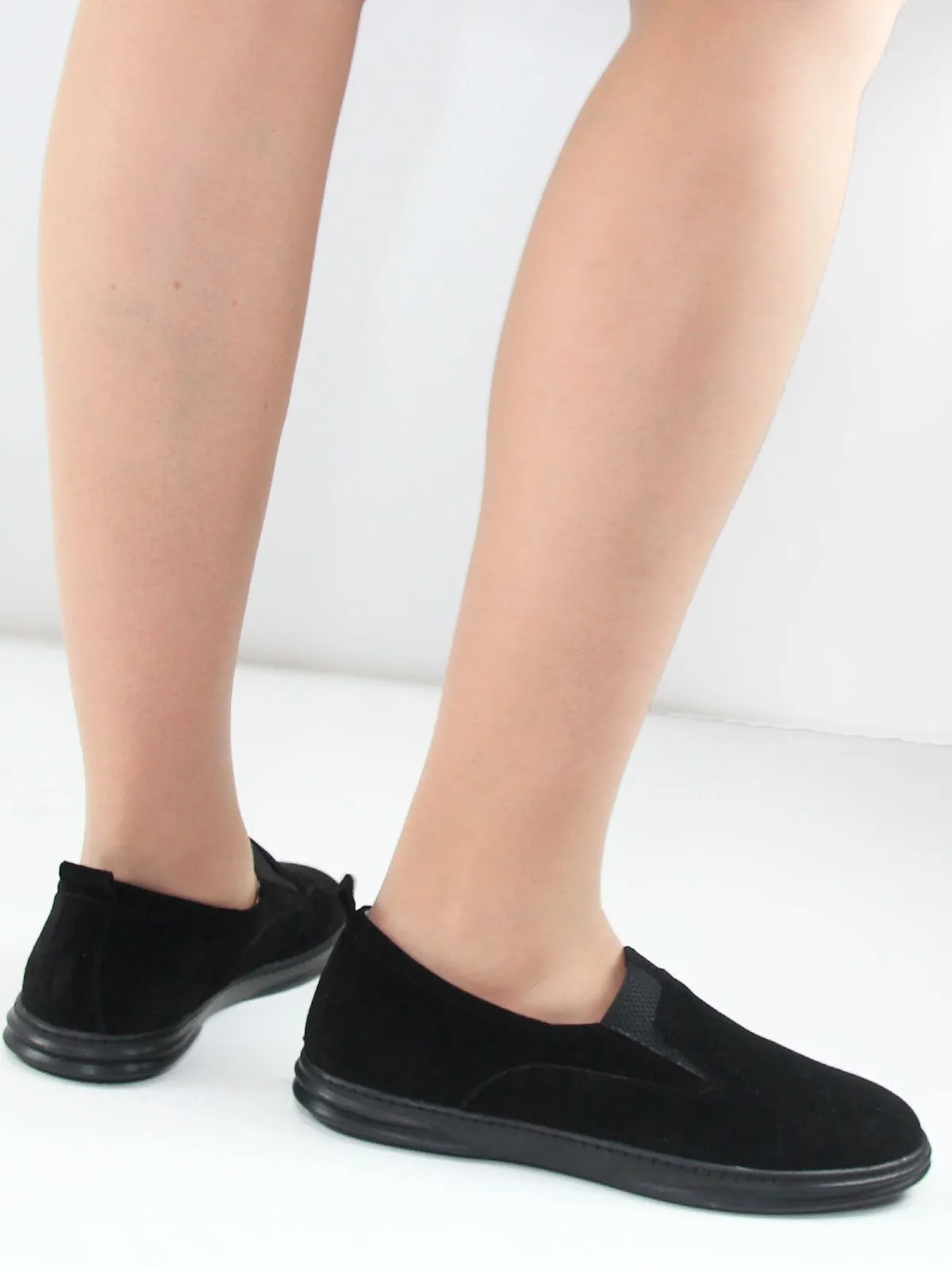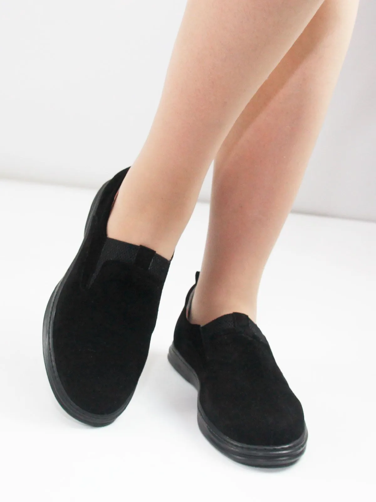 Женские лоферы серии комфорт из мягкой натуральной замши — удобная и стильная обувь больших размеров для повседневного гардероба. Модель выполнена из натуральной замши классического чёрного цвета — универсального и всегда актуального оттенка, который легко сочетается с любыми образами и подходит как для повседневной носки, так и для более аккуратных городских комплектов. Лаконичный дизайн без лишнего декора делает эти замшевые лоферы практичной и универсальной парой на каждый день.