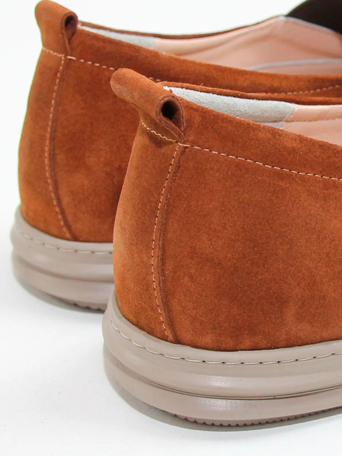 Туфли относятся к серии комфорт и изготовлены из мягкой натуральной замши, благодаря чему обувь хорошо адаптируется к форме стопы и обеспечивает удобство при длительной носке. Модель подходит на среднюю и увеличенную полноту, не маломерит и идёт в размер. Внутри установлена съёмная стелька из мягкой натуральной кожи, которая делает посадку ещё более комфортной.