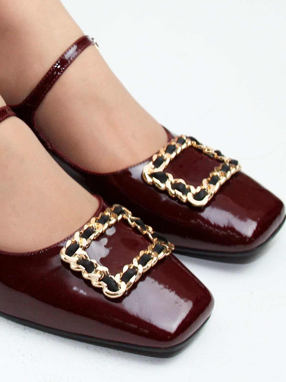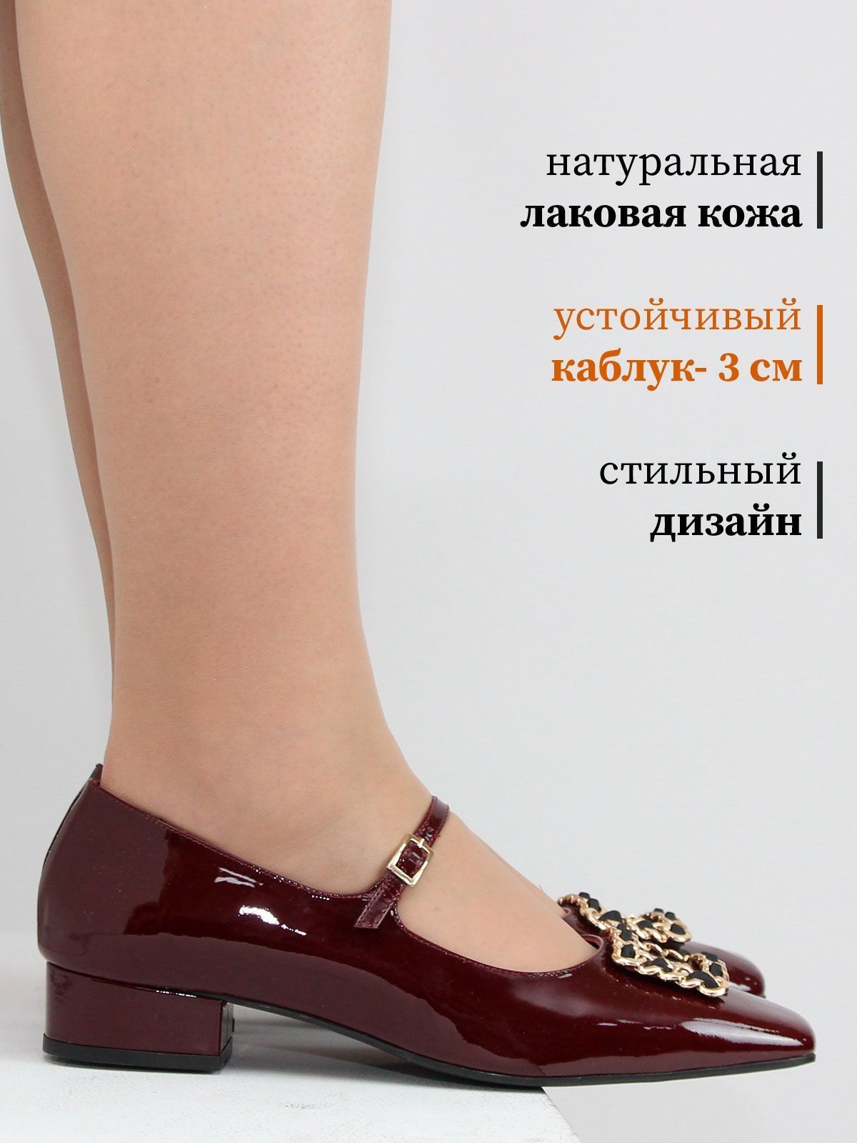 Классические женские туфли Мери Джейн из натуральной лакированной кожи — это гармония элегантности и комфорта. Модель выполнена в изысканном бордовом оттенке, украшена декоративной пряжкой и аккуратным ремешком на подъёме. Широкий носок придаёт обуви особую выразительность и делает её особенно удобной для повседневной носки. Устойчивый низкий каблук дополняет образ и дарит уверенность в каждом шаге.