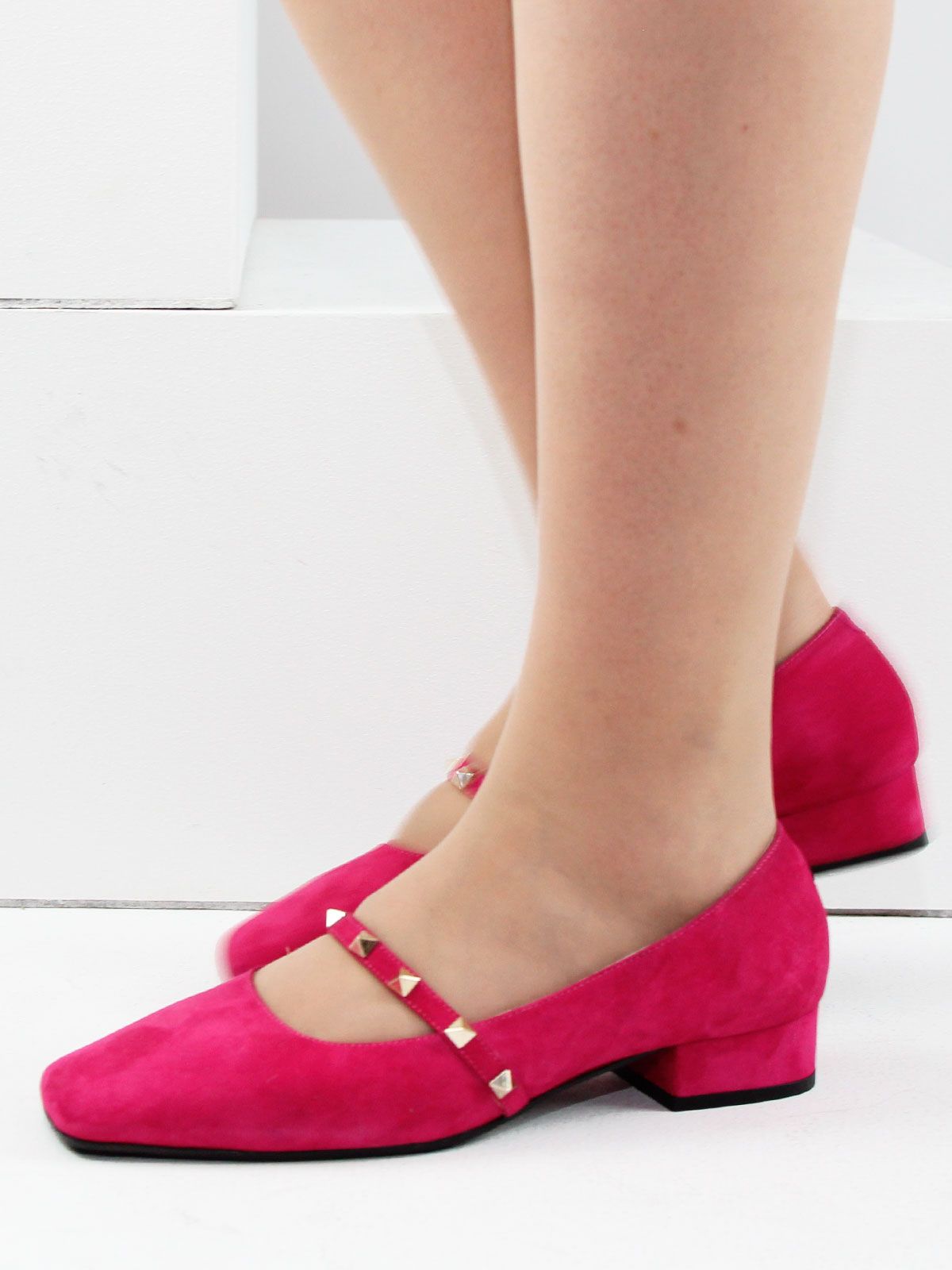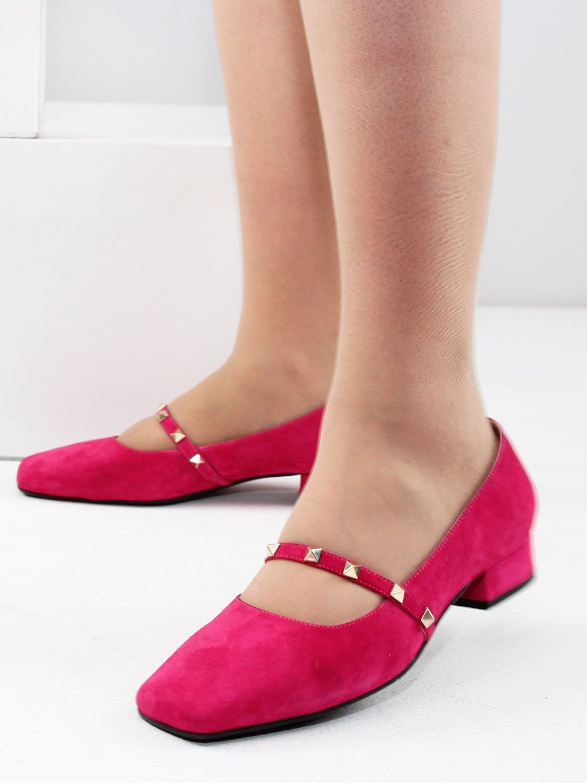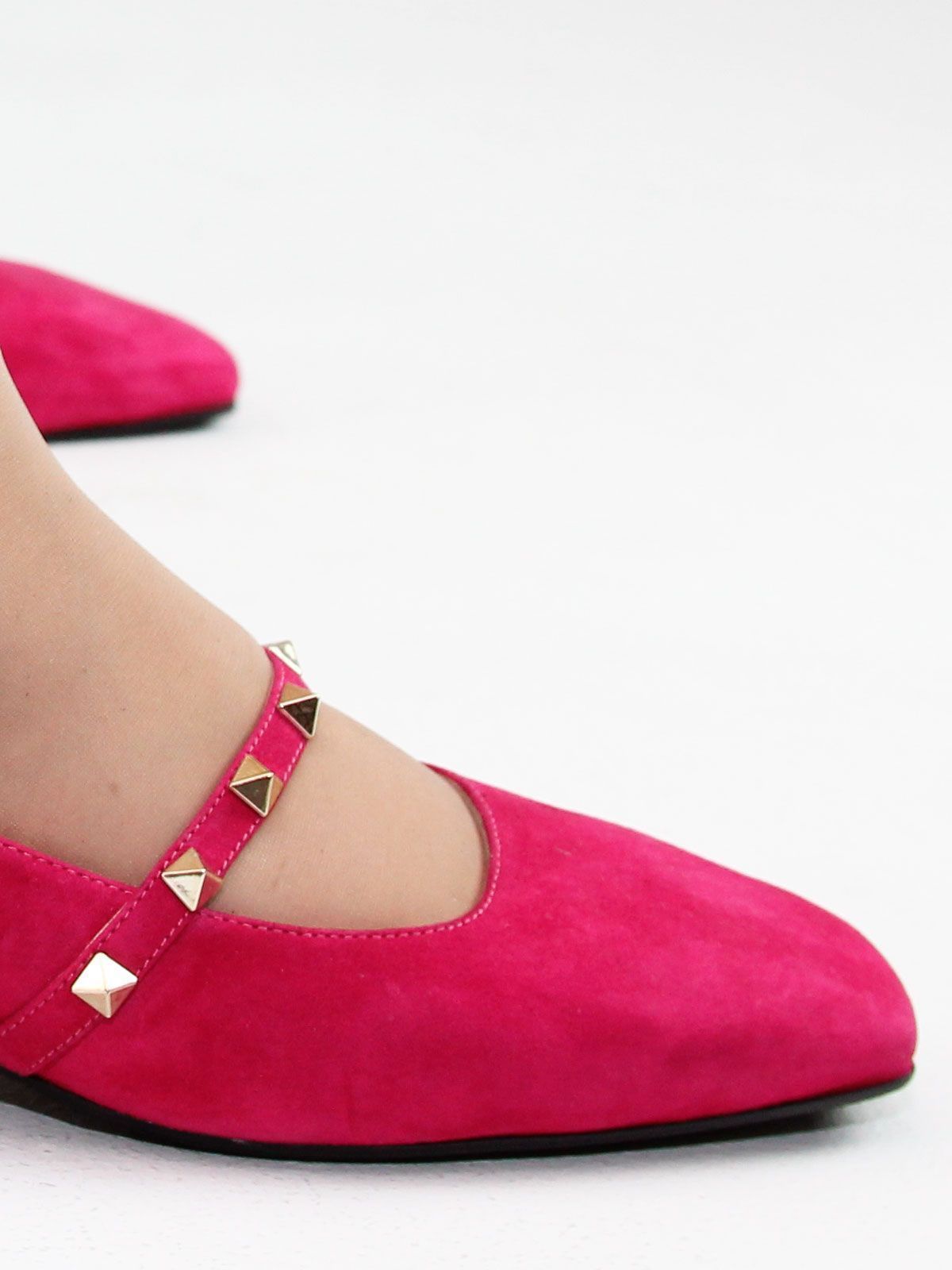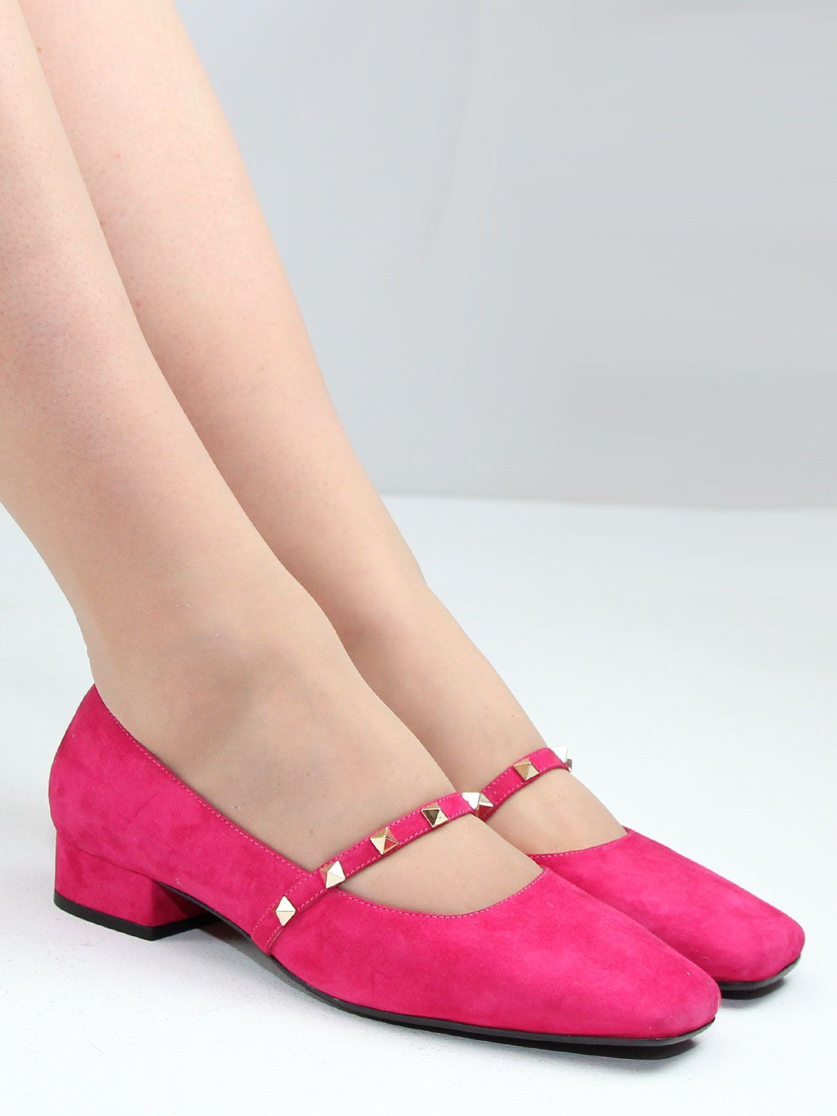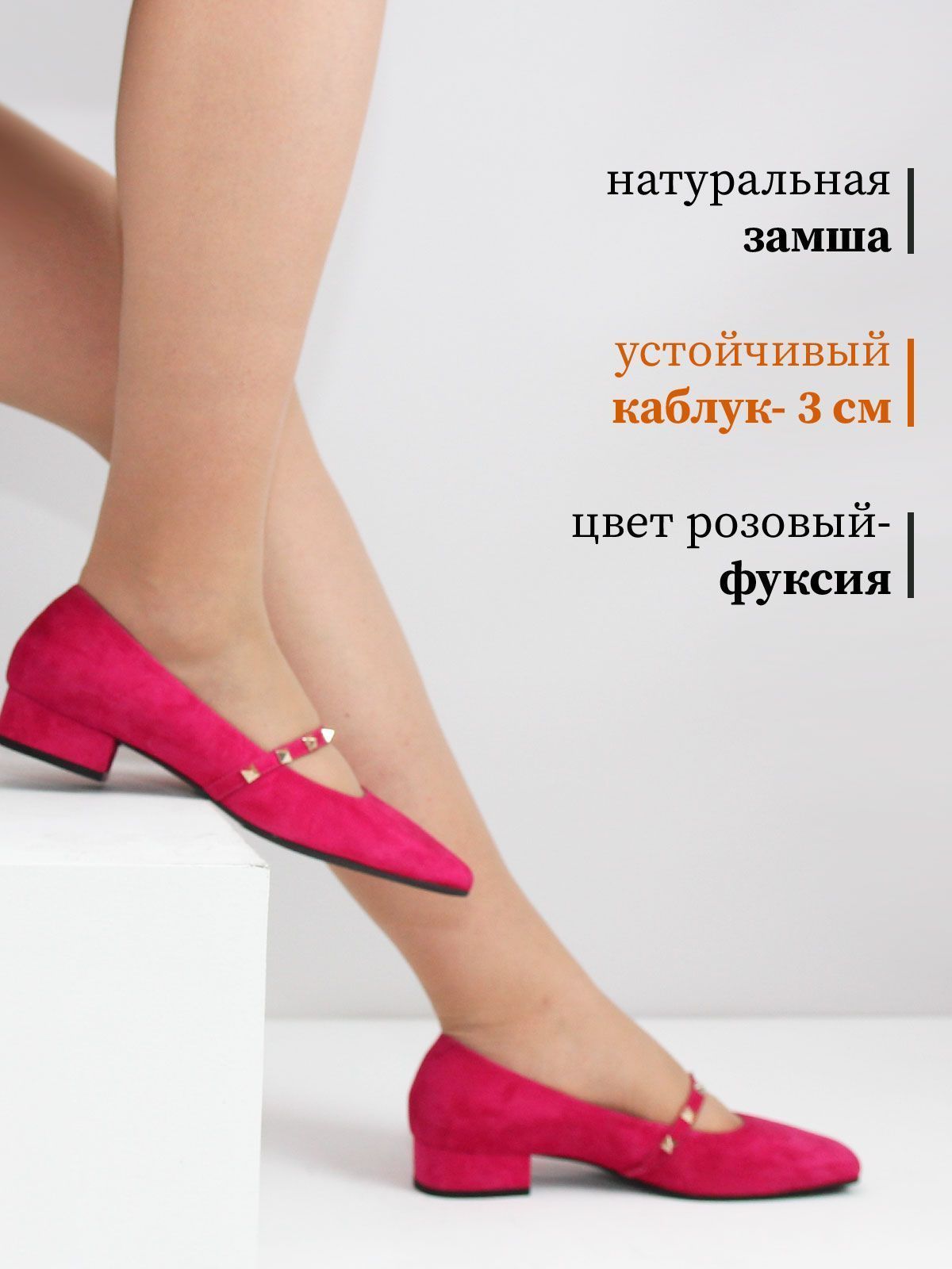 Яркие женские туфли из натуральной замши роового цвета (фуксия) — стильный акцент в вашем летнем гардеробе. Элегантная форма с широким носком и удобным низким каблуком делает эту модель комфортной и выразительной. Линию подъёма украшает изящный ремешок с декоративными элементами, подчёркивающий женственность и индивидуальность. Замша создаёт ощущение лёгкости на каждый день.