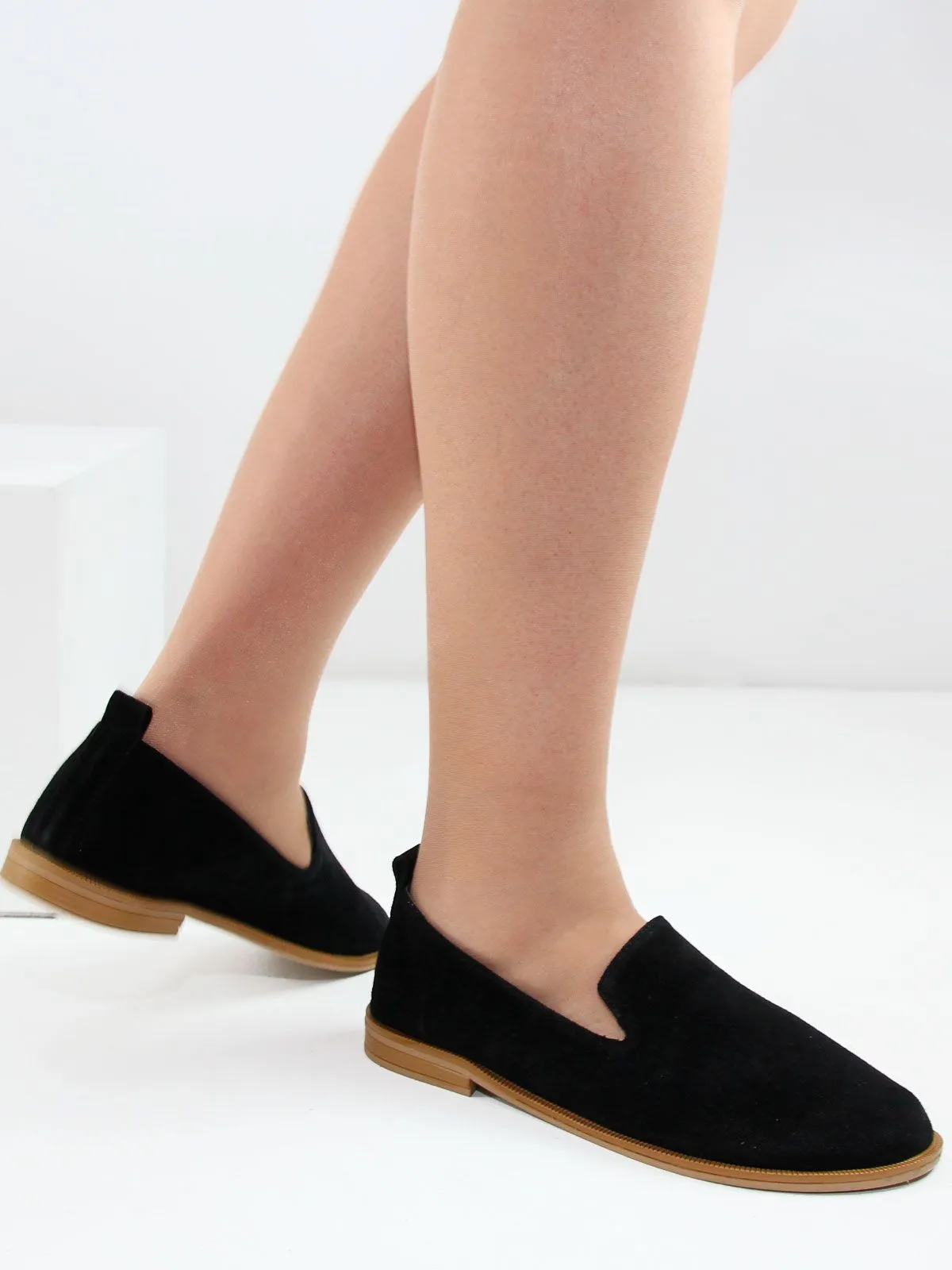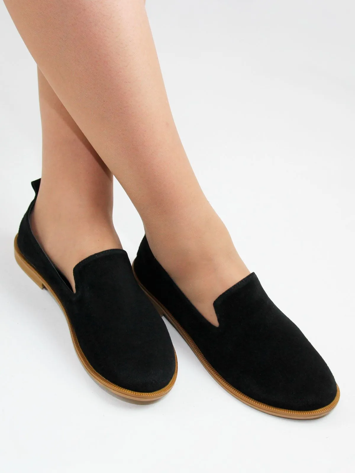 Модель выполнена из натуральной замши, благодаря чему обувь комфортно садится по стопе и обеспечивает удобство в течение всего дня. Лаконичный дизайн без лишнего декора делает лоферы аккуратными, современными и универсальными.