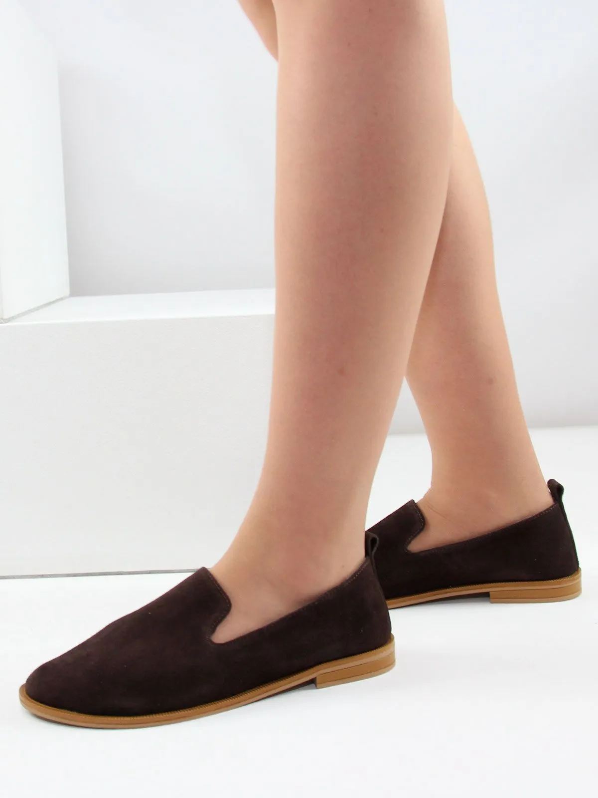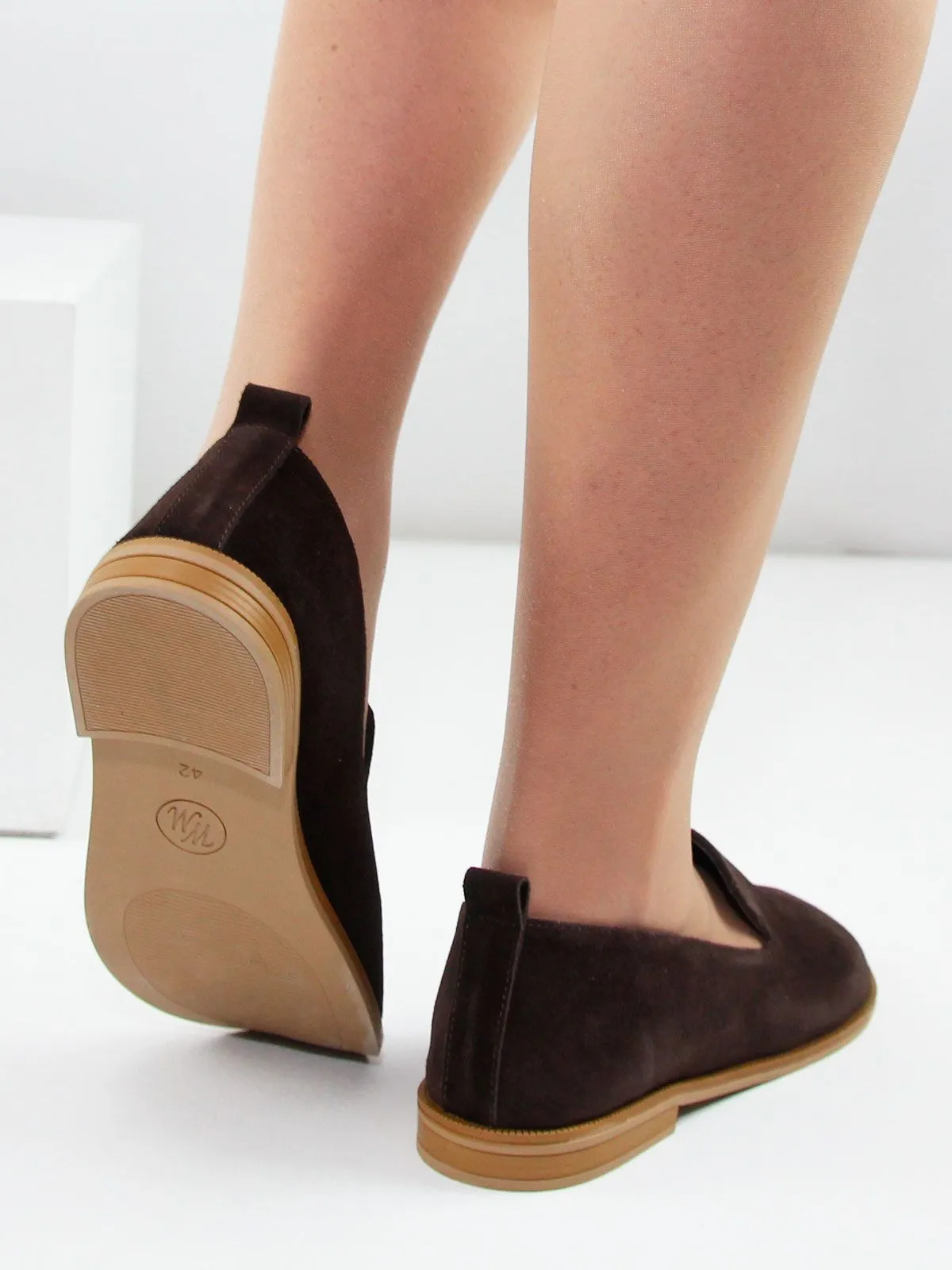 Модель выполнена из натуральной замши, благодаря чему обувь комфортно садится по стопе и обеспечивает удобство в течение всего дня. Лаконичный дизайн без лишнего декора делает лоферы аккуратными, современными и универсальными.