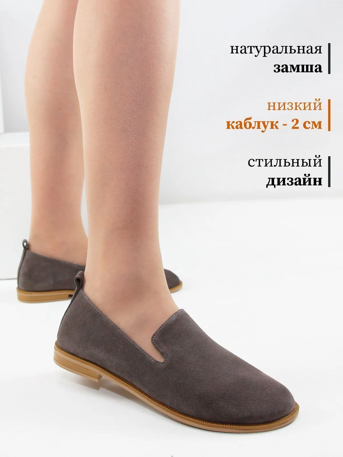 Модель маломерит, поэтому рекомендуется ориентироваться на размерную сетку. Лоферы большого размера из натуральной замши серо-коричневого цвета — элегантная и универсальная модель для повседневного гардероба. Спокойный серо-коричневый оттенок выглядит благородно и легко сочетается с разными стилями одежды, от классических до повседневных городских образов.