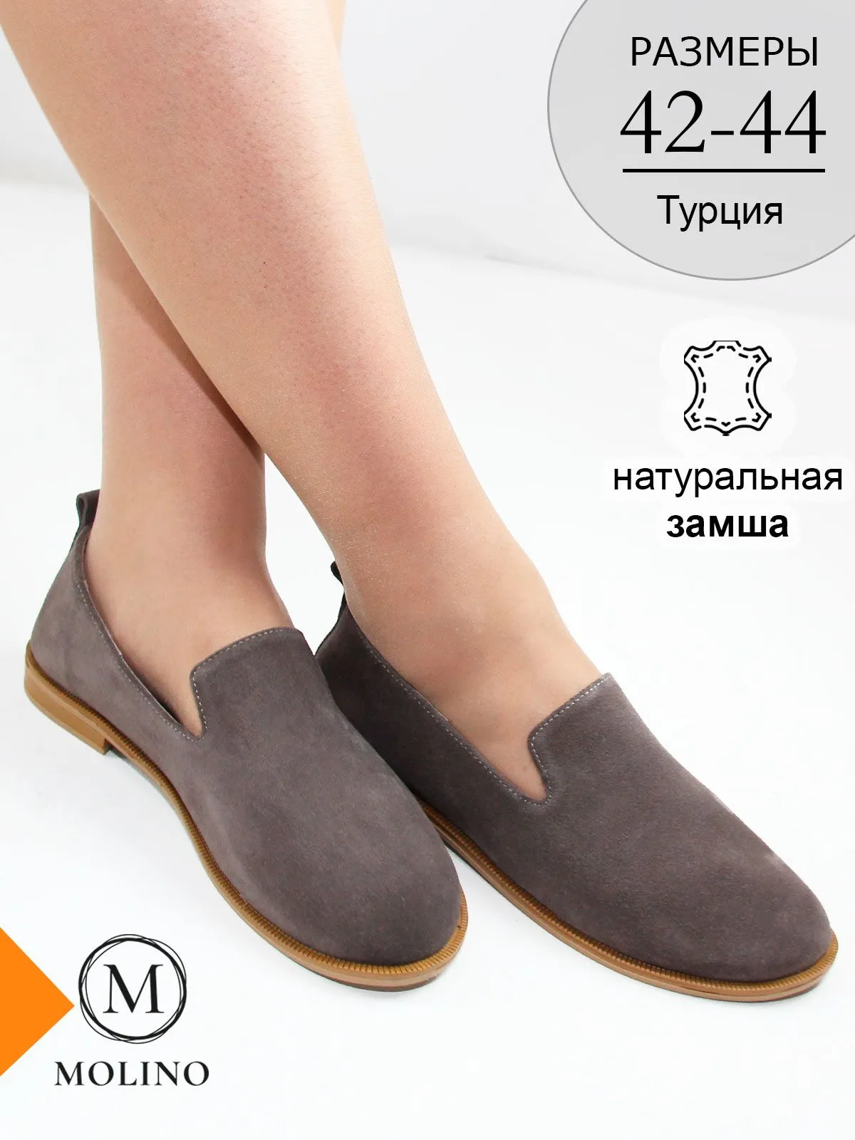Модель относится к категории обуви больших размеров и представлена в размерах 42–44. Производство — Турция. Бренд Molino.