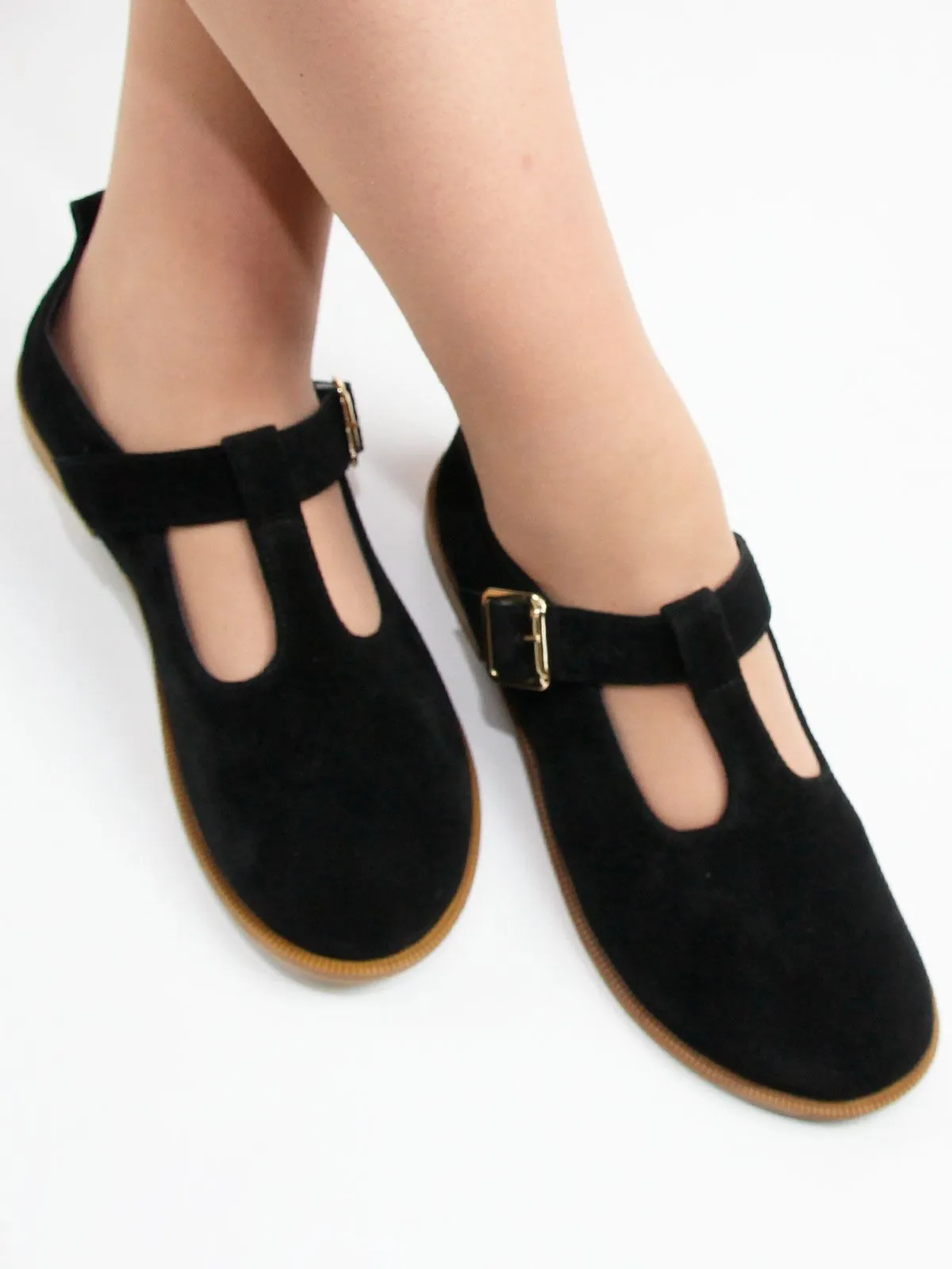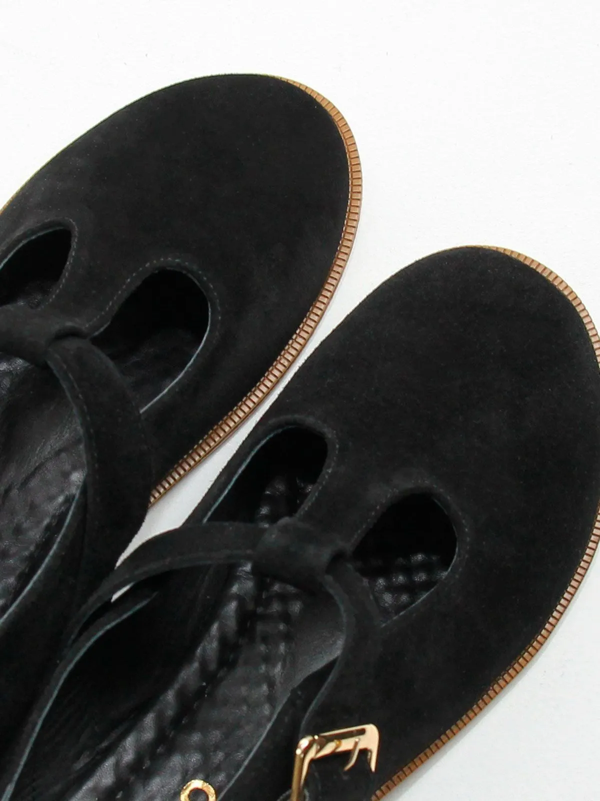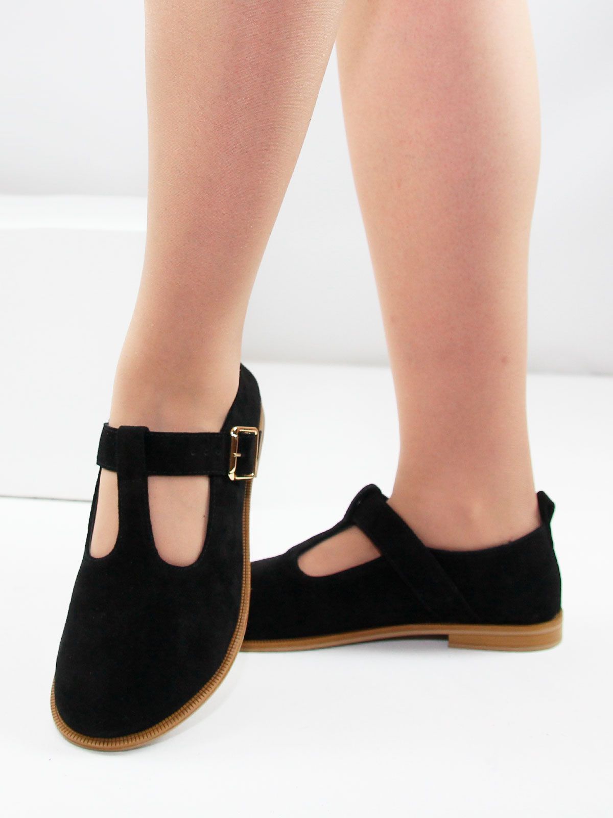 Форма с Т-образным ремешком делает модель устойчивой на стопе и придаёт ей аккуратный, женственный вид. Регулируемая пряжка позволяет подстроить посадку под подъём и ширину ноги.