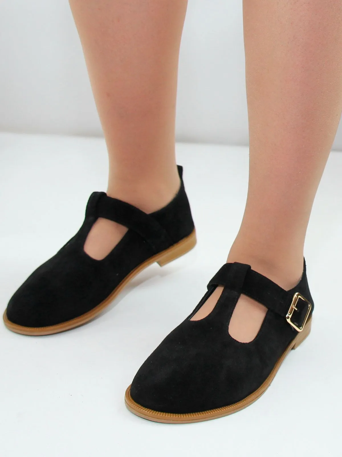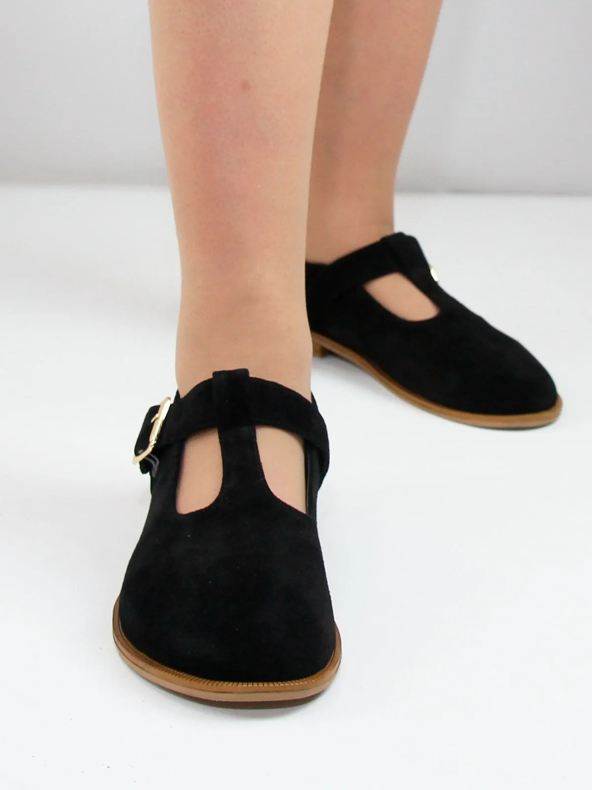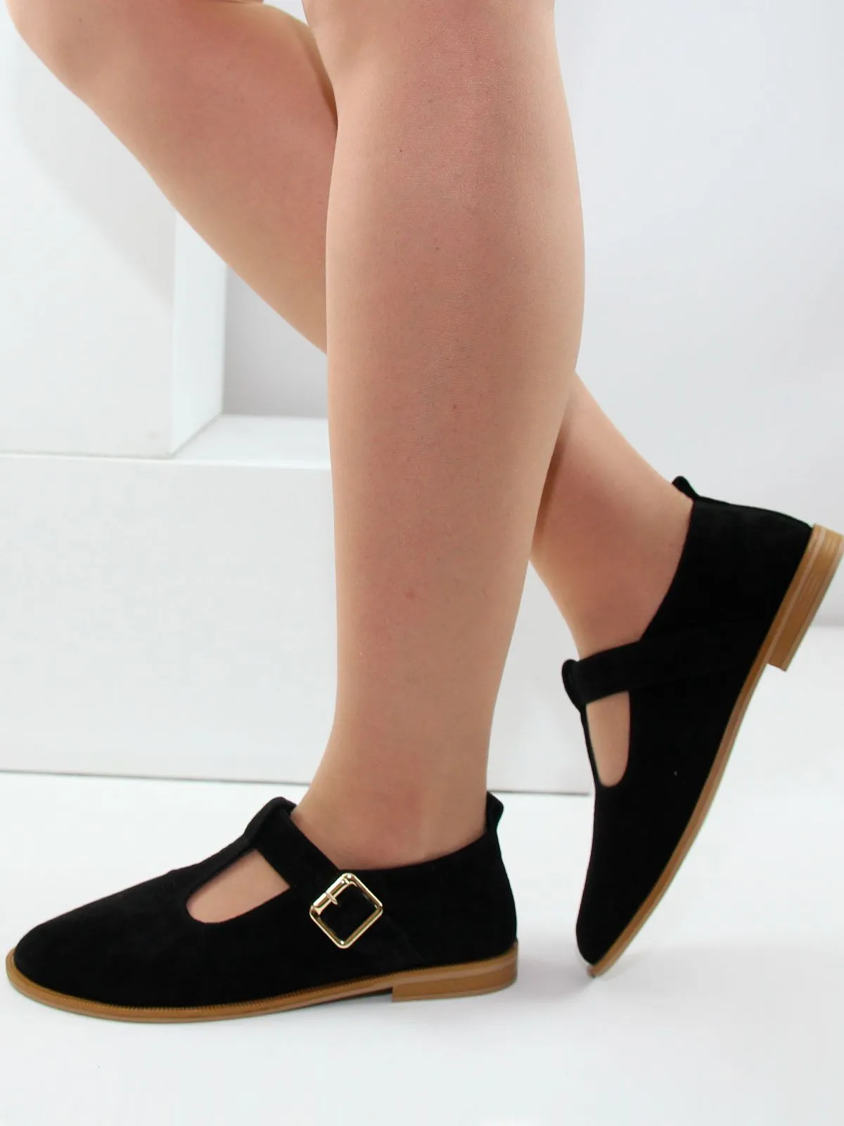Форма с Т-образным ремешком делает модель устойчивой на стопе и придаёт ей аккуратный, женственный вид. Регулируемая пряжка позволяет подстроить посадку под подъём и ширину ноги.