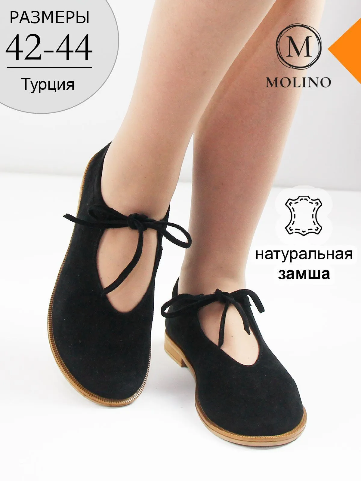 Туфли большого размера из натуральной замши чёрного цвета — элегантная и женственная модель для повседневного гардероба. Классический чёрный оттенок выглядит аккуратно и универсально, легко сочетается с разными стилями одежды.