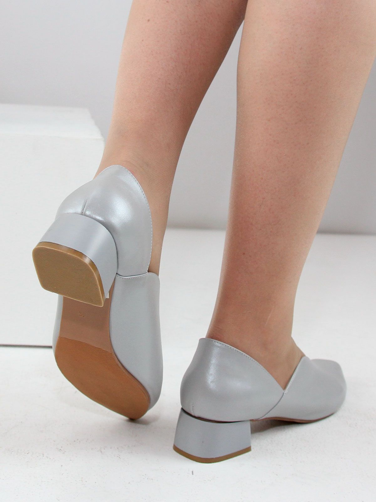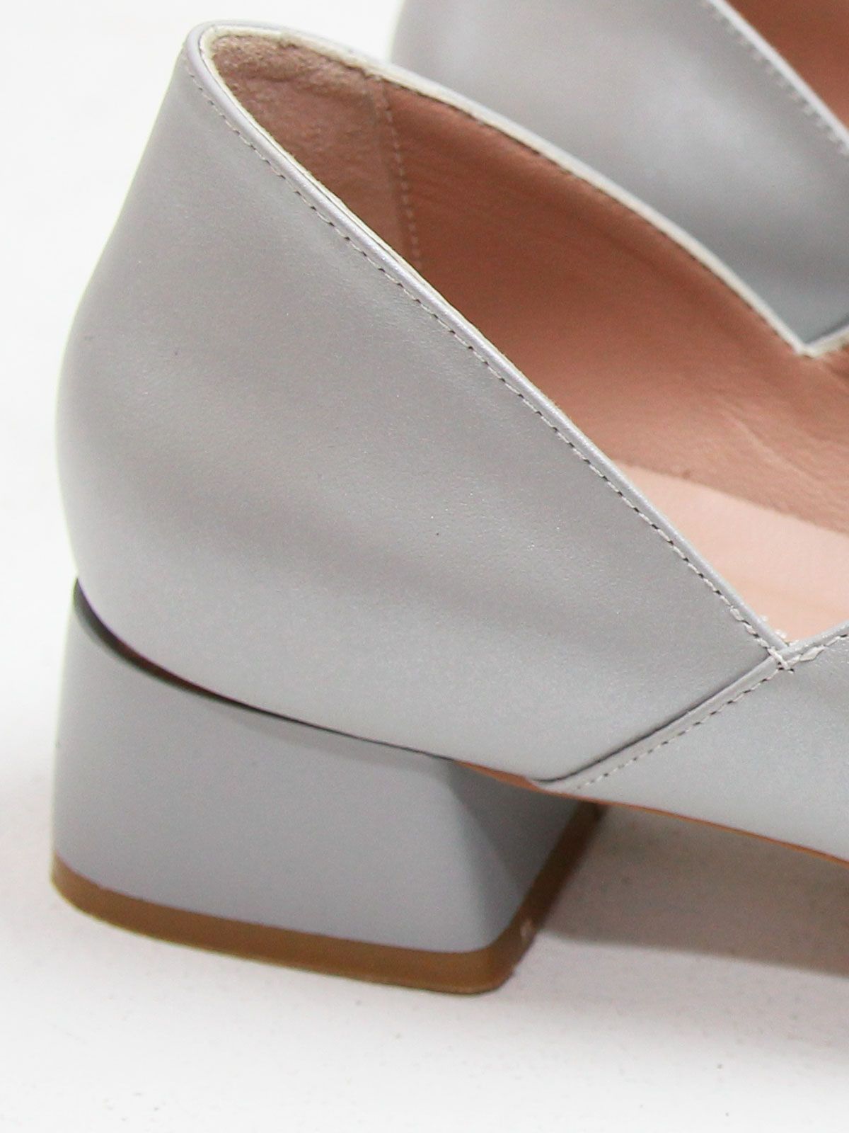 Классические туфли - лодочки большого размера на каблуке, из натуральной кожи. Кожаные туфли на каблуке подойдут на стандартную стопу. Модель выполнена в сером цвете.